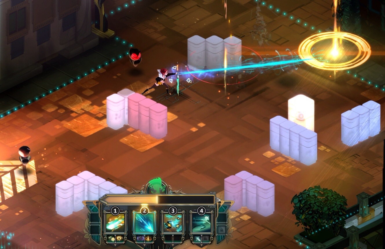Cuando es primaria, sirve como ataque directo durante el turno. Aquí podremos sumarle hasta dos poderes más, pero en modo secundario, complementando el efecto, que puede ser incrementando la fuerza, haciendo más largo el alcance o provocando incluso que un enemigo se nos una por momentos. Tendremos en Transistor dos ranuras para acciones pasivas, que afectarán todos y cada uno de los ataques que hagamos durante el turno, como velocidad de ataque y/o recuperación, disminución de daño recibido, aumento de vida, etcétera. Así trabajan las funciones.