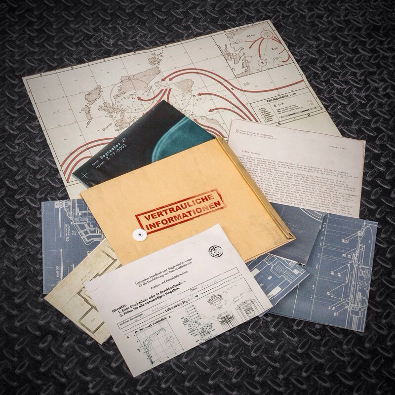 Once documentos clasificados, entre los cuales hay expedientes, mapas y fotos de rayos X