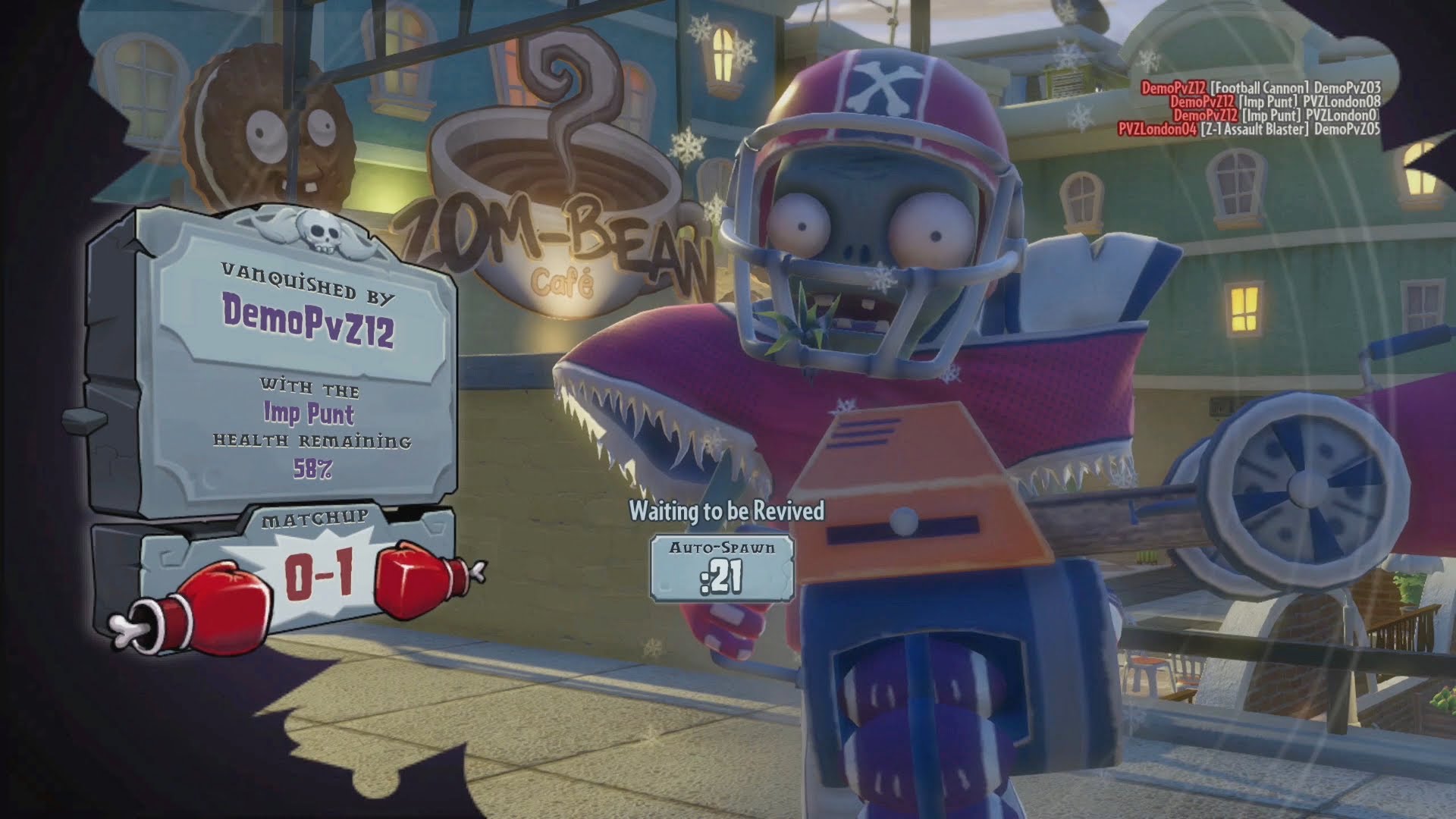 El modo competitivo no requiere mucha explicación: son dos equipos, zombis o plantas, y el primero que mate a cincuenta miembros del rival gana. Se desarrolla en cualquiera de los mapas y podremos volver cuantas veces queramos después de haber muerto. Aunque es mejor esperar a que los reviva un compañero pues así disminuyen un punto al marcador. Dentro de este modo, se puede jugar una ramificación del mismo (sí, logré hacer mi juego de palabras) en donde podemos ser zombis y defender nuestra tumba de las plantas, las cuales también son manejadas por jugadores que tratan de salvar su jardín; básicamente es proteger nuestro territorio.
