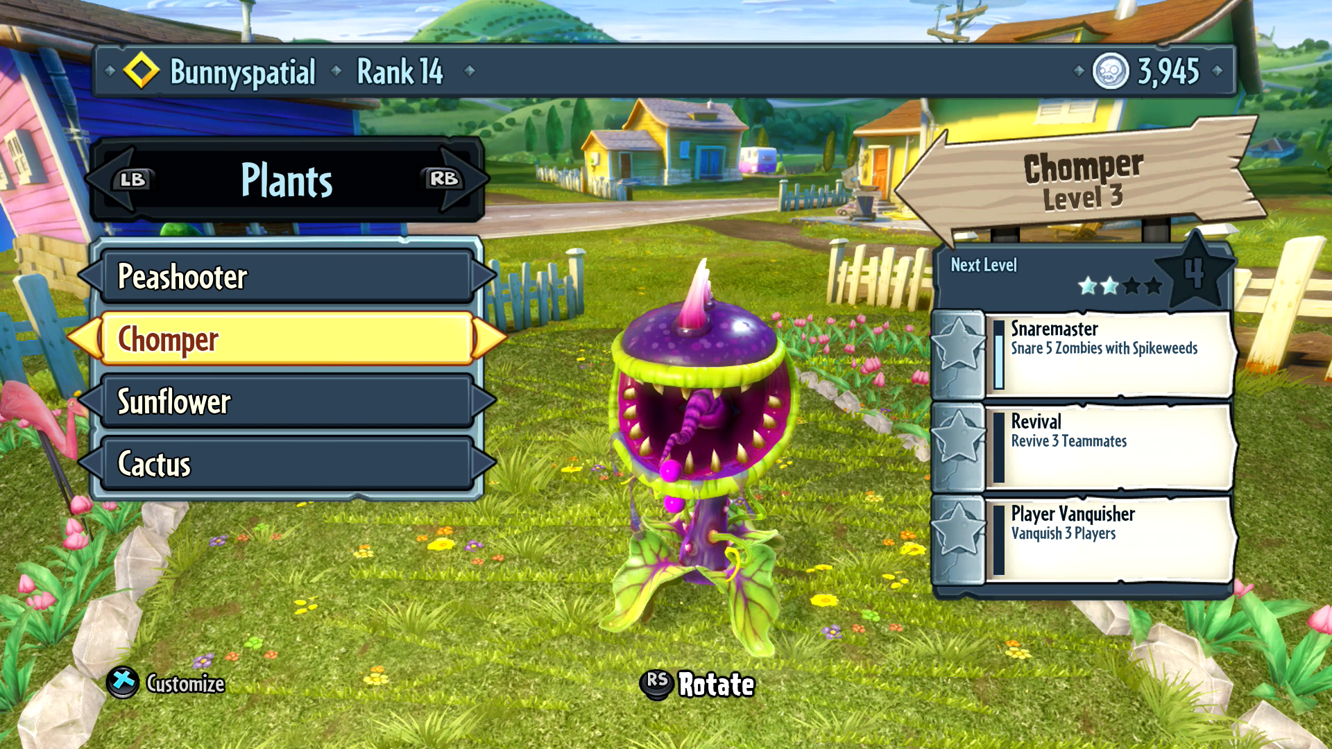 Para jugar tenemos a diferentes clases de “soldados” por bando, por ejemplo la planta carnívora, excelente para combate melee a corta distancia; el girasol, con poder mediano y que puede curar a otras plantas, y el cactus, que viene a ser el francotirador del juego y puede soltar algunos drones. Los zombis tienen unidades equivalentes y en ambos casos podemos desbloquear habilidades y subclases conforme jugamos.