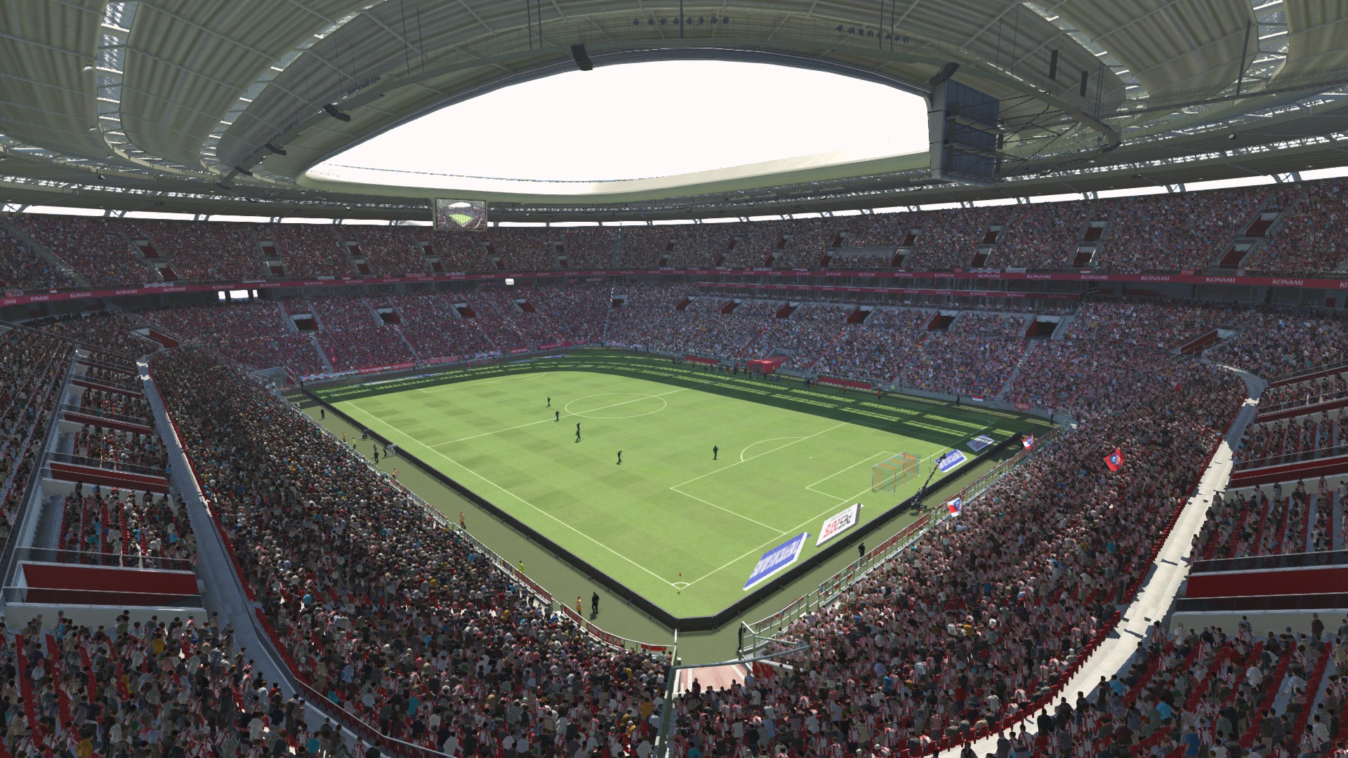 Lo primero que vemos en PES 2015 es la toma abierta con un público bastante bien logrado, debo decir que de lejos, de lejos, de lejos nomás la afición se nota como una verdadera hinchada en los estadios. Por favor eviten voltear a verlos una vez estemos cerca ya que sufrirán de una buena decepción. Conforme la distancia se acorta, los patrones son sumamente marcados y pierde toda credibilidad, por eso y les repito, nomás de lejos. En cuanto a sus gritos puedo mencionar que están decentes, ningún cántico que me haya sorprendido o merezca la pena volver a escuchar. Lo común.