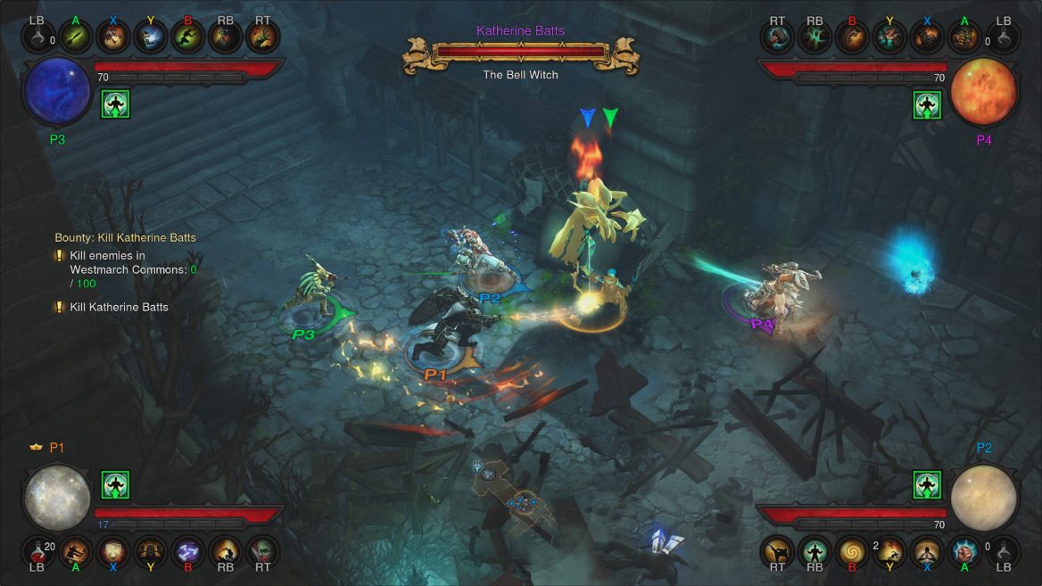 Ok, sigue el aspecto que en mi opinión paga un tercio del precio de Diablo III: Ultimate Evil Edition: el multijugador cooperativo local. Es bien fácil, nomás conectamos el otro control, lo encendemos y listo. No vayan a aplicar la de un servidor con mi primo, pues no pudimos jugar durante unos minutos sin darnos cuenta que su control estaba apagado. Error de novatos yo creo.