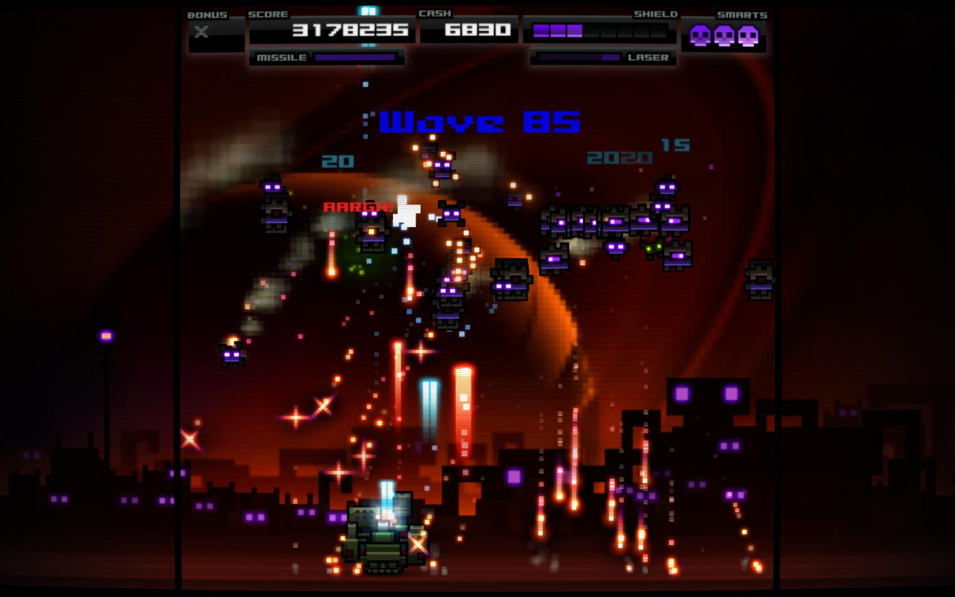Cero complicaciones para la explicación así como para la ejecución, pues debemos tener en cuenta que únicamente tenemos que controlar el movimiento lateral de nuestra nave y su cañón más la bomba especial. Al iniciar el juego, sólo contamos con un arma de fuego que dispara municiones con un cierto retraso en la recarga, que es pequeño pero hace sentir que hay una mala respuesta del botón: no lo es, simplemente el mecanismo es así, de lo contrario sería mucho más fácil acabar el juego.
