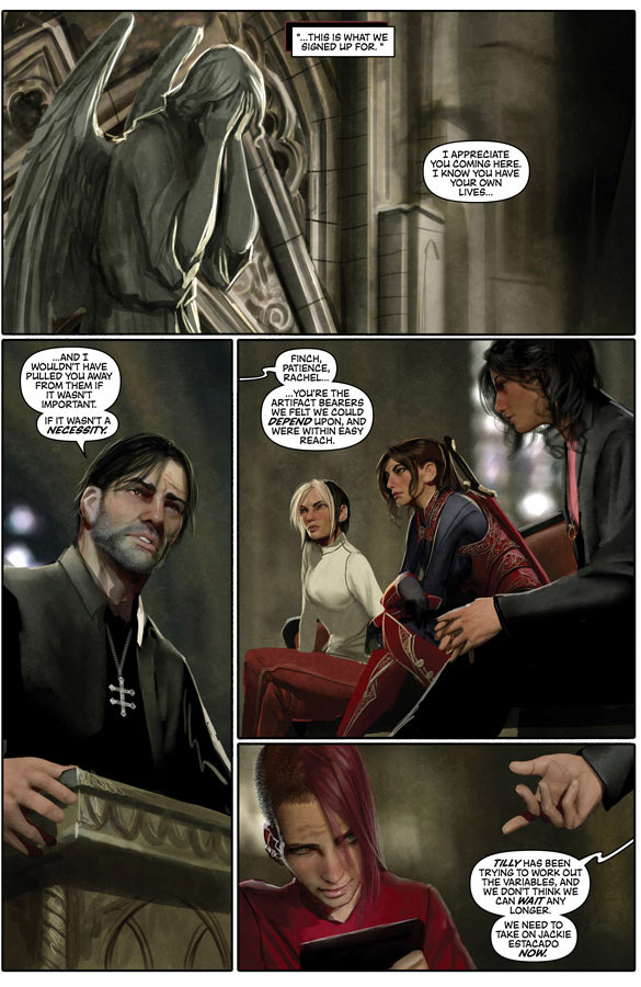¿Qué está ocurriendo con Miss America y Kate Bishop? Aunque los personajes hicieron aparición en el #1, ninguna de las dos parecen al tanto de la situación. Y aunque Kieron Gillen comenta que posiblemente están ya en busca de Wiccan (quien junto a Hulkling y Loki se marcharon a Asgard tratando de buscar una forma de detener a Mother), podrían estar haciendo algo en secreto.