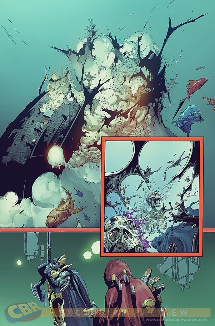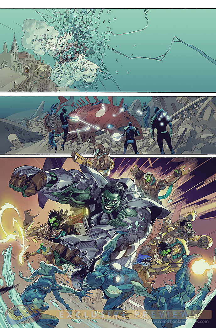 Marvel liberó un previo de las páginas de Indestructible Hulk #5. En esta historia, al más puro estilo de Aquaman, el investigador Banner y su alter ego Hulk intentan descifrar el secreto de Lemuria (otro continente hundido), aunque en el camino tenga que enfrentarse con Attuma, uno de los archienemigos de Namor el Submarinero (¿irá a hacer una aparición como estrella invitada?).
