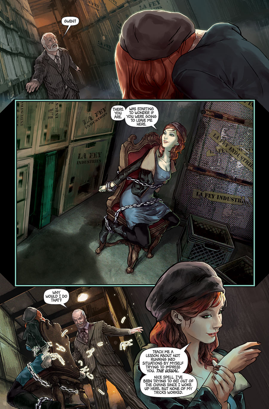 Otro de los personajes de la historia es Gwen, una alumna de Merlín que tiene un uso más limitado de la magia pero será algo así como la instructora de Simon, al menos al principio del cómic.