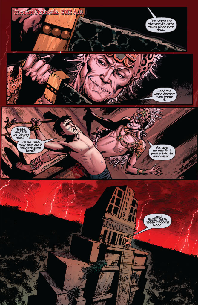 La premisa es extremadamente sencilla: en vísperas del fin del mundo en 2012, un hechicero maya convoca a los dioses de la destrucción para ponerle fin al mundo. Diferentes guerreros tendrán que viajar por el tiempo y aliarse para detener la amenaza. El escritor de esta historia es Ron Marz, con ilustraciones de Walter Geovani.
