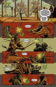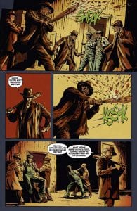 La historia nos relata los primeros pasos de Britt Reid como el heroico Green Hornet en la década de los ’40s, donde acompañado por su chofer karateka Kato deberá pararle los pies a la mafia de Boston liderada por Vincent Caruso. Aún si no te interesa mucho su setting retro, te recomendamos que le eches un ojo a este primer capítulo, ya que tiene una buena narrativa y acción clásica. Échale un ojo en la galería que hemos preparado para ti:
