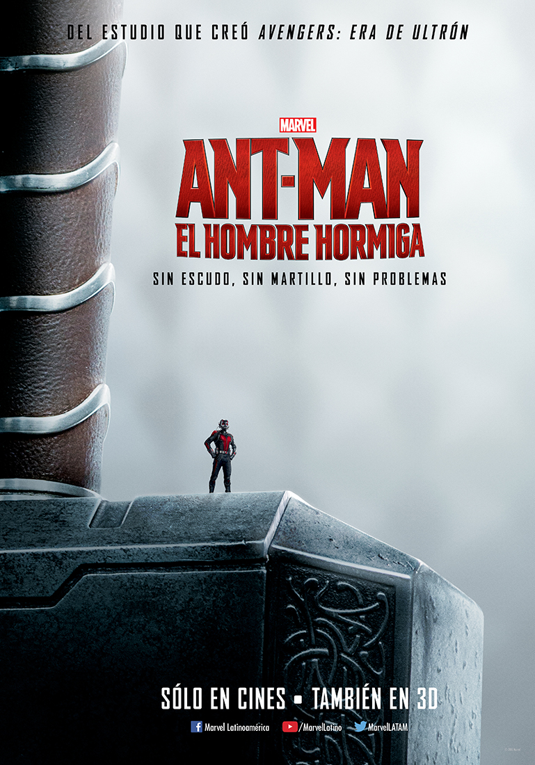 Además de esto te mostramos tres carteles nuevos de Ant-Man: El Hombre Hormiga, sin armadura, sin escudo, sin martillo…sin problemas la película llegará a cines el próximo 17 de julio.