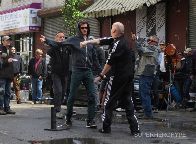 Continúan llegando imágenes de las escenas de pelea de El Sorprendente Hombre Araña 2 entre Andrew Garfiel y Paul Giamatti como Spider-Man y Aleksei Mikhailovich, respectivamente.