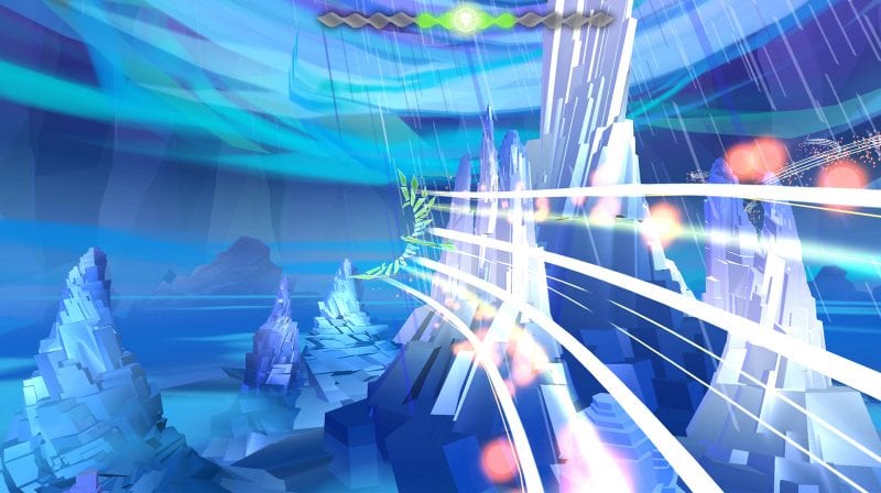 La historia de Entwined refuerza bastante los hermosos y fluidos gráficos que muestra, haciendo totalmente artístico este juego. En Entwined manejaremos dos almas que están enamoradas, una en forma de pez, y otra representando un ave, cada una controlada con el joystick correspondiente a su lado. En el video anexo, se muestra cómo iremos volando a través de una especie de túnel, recolectando figuras de nuestro propio color. Ambas almas no pueden estar juntas, pero cuando por fin logramos hacerlo, se convertirán en un poderoso dragón. Ya me ganaron ahí mismo.