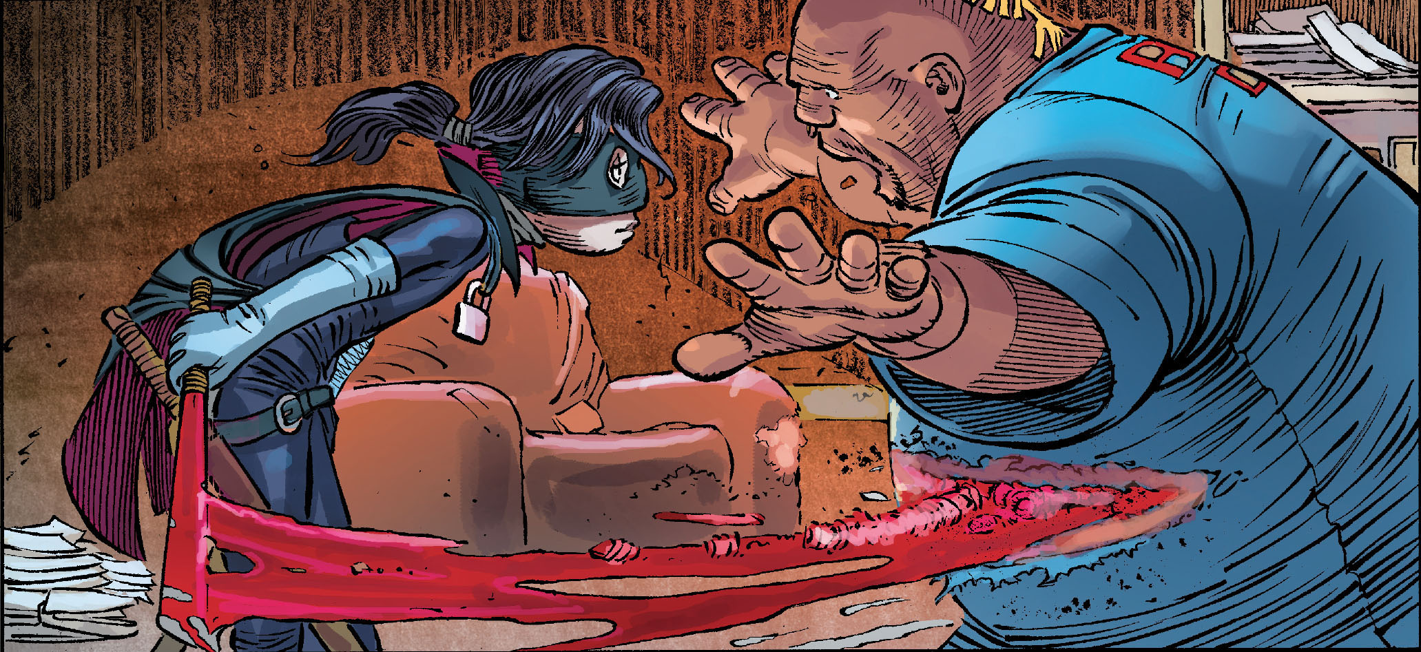 Sin embargo, la introducción unos capítulos más delante de Big Daddy y Hit Girl da un giro brusco a las bases sentadas anteriormente. Estos dos personajes, padre e hija entrenados por años para destazar criminales de mil y una formas diferentes, le dan un acercamiento vertiginoso, violento y cargado de adrenalina a la historia, pero al mismo tiempo sentí que me derribaban de la nube de realismo sobre la cual me había recostado suavemente durante los primeros episodios.