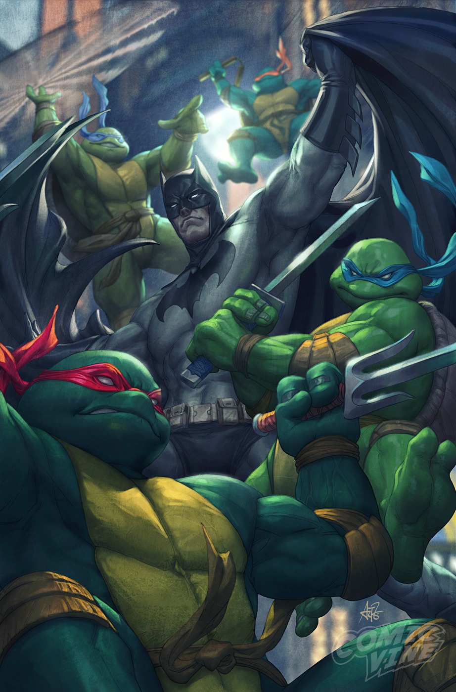 Aquí tienen algunas de las portadas variantes de Batman/Teenage Mutant Ninja Turtles que se podrán adquirir en distintas tiendas de cómics en Estados Unidos y México. También está la opción de comprarlos digitalmente vía plataformas como Comixology.