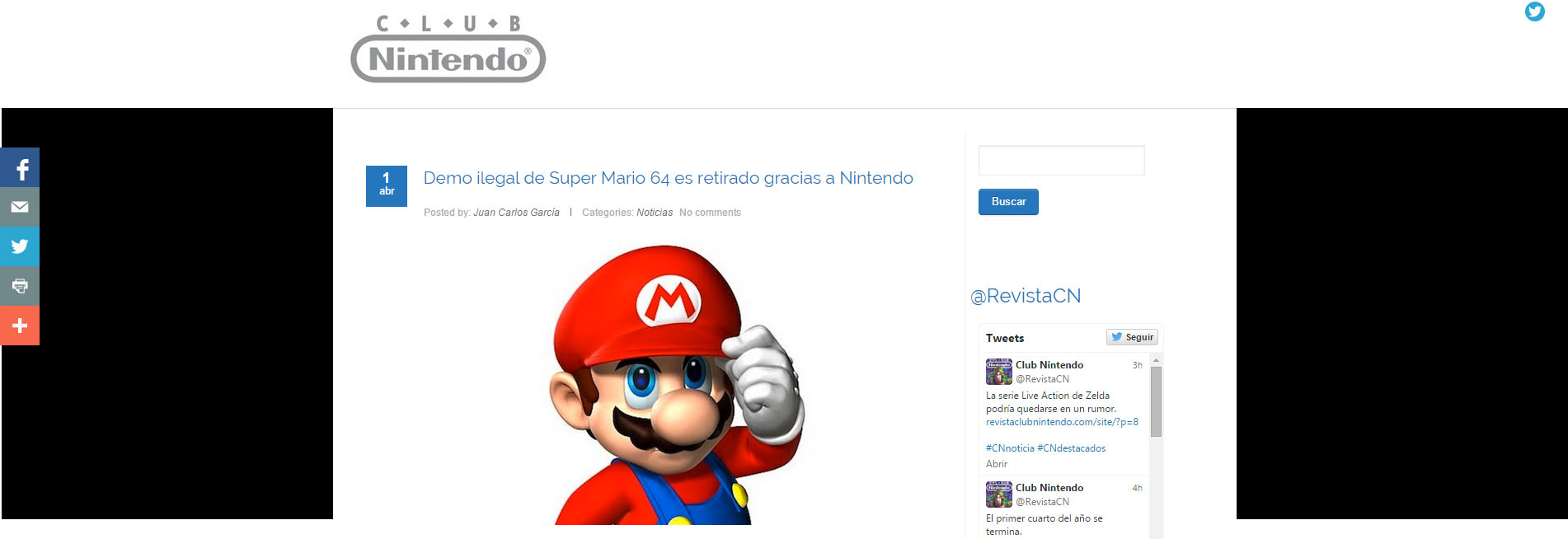 Más allá del debate natural que esto ocasiona –y el cual ya se desborda en redes sociales y tableros de mensajes con opiniones a favor y en contra-, me llamó muchísimo la atención la nota informativa con la que el portal web de Club Nintendo distribuyó la información: “Demo ilegal de Super Mario 64 es retirado por Nintendo”.