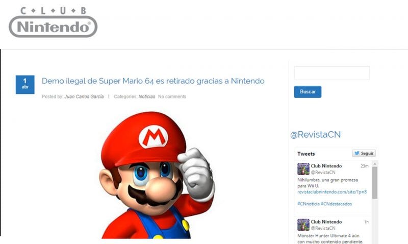 Más allá del debate natural que esto ocasiona –y el cual ya se desborda en redes sociales y tableros de mensajes con opiniones a favor y en contra-, me llamó muchísimo la atención la nota informativa con la que el portal web de Club Nintendo distribuyó la información: “Demo ilegal de Super Mario 64 es retirado por Nintendo”.