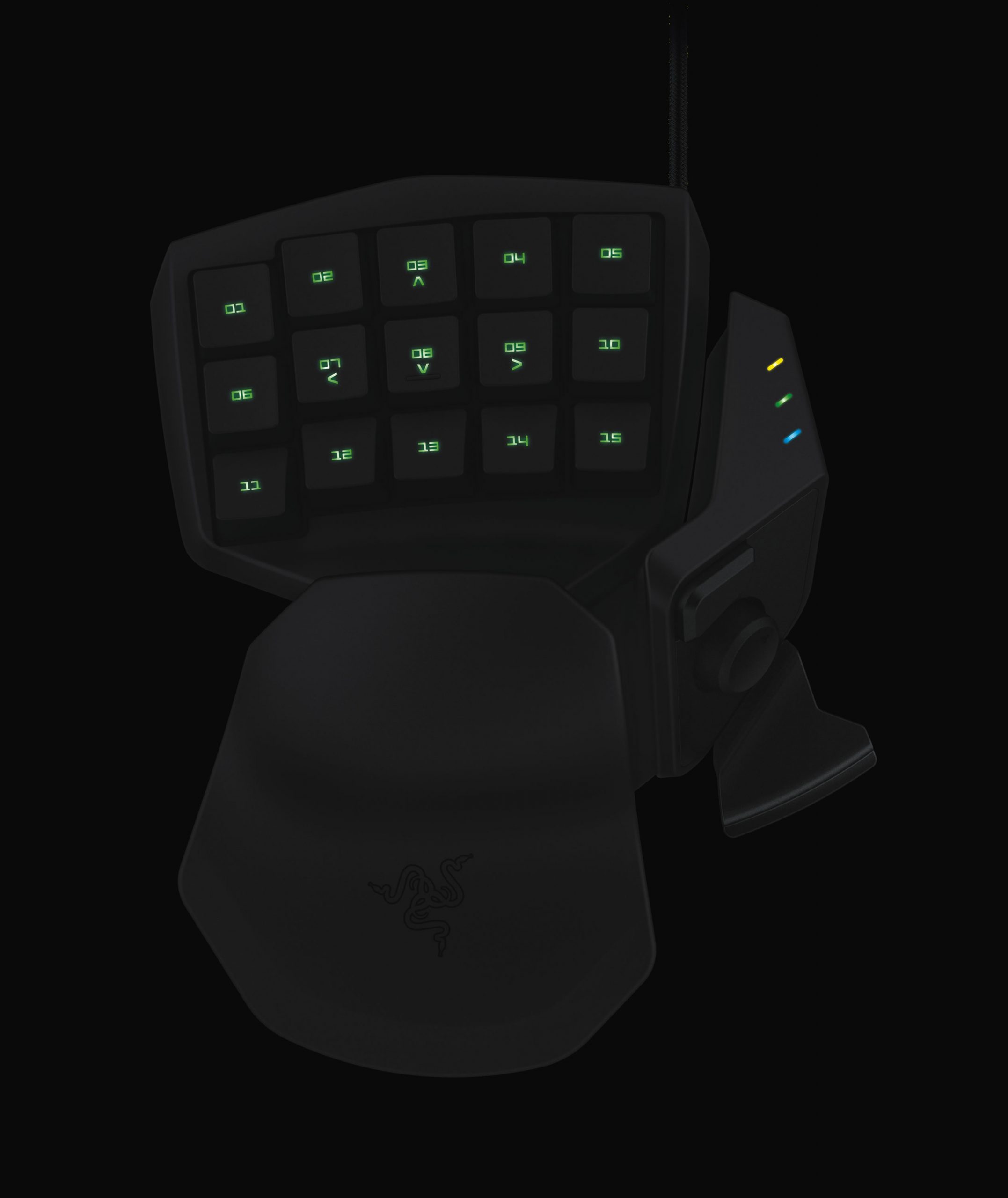 Siendo el sucesor del multipremiado Razer Nostromo, el Tartarus incorpora un cómodo factor de forma y 25 teclas programables incluyendo una almohadilla direccional de ocho vías para el pulgar. La almohadilla del pulgar permite a los jugadores moverse con mayor precisión mientras que opera como tecla modificadora, multiplicando el conjunto por ocho, lo cual proporciona 128 OPCIONES DIFERENTES DE COMANDO.
