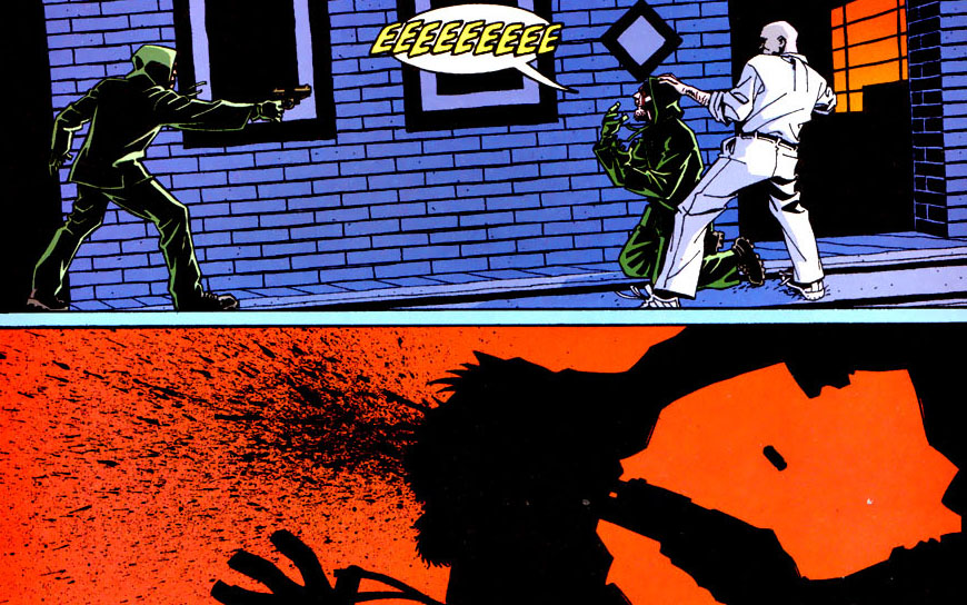Red es un viejo trastornado y lo único que sabe hacer es matar, sin embargo lo que más desea es que lo dejen en paz, olvidar sus recuerdos y vivir solo (¿Hulk, eres tú?). Rambo se queda corto en comparación a este pelón, sin embargo todo lo que sucede en el cómic parece creíble, al menos dentro de su propio universo. El segundo número es el que más texto tiene y es donde Red expone sus preocupaciones y verdaderos sentimientos… bla, bla, bla, pero, ¿a quién le importa? Que siga la carnicería.