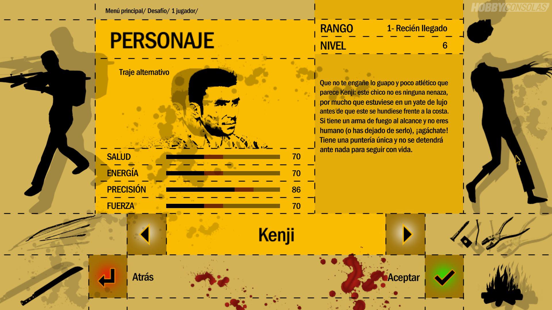 Tenemos varios personajes a elegir con diferentes estadísticas cada uno, sin embargo yo no noté ninguna diferencia real entre ellos, los sentí iguales; también hay muchos no jugables que nos ayudarán en nuestro afán de escapar con una excepción, el carismático Kovac, un sobreviviente que entrena a nuestro personaje en el arte de permanecer con vida; Kovac es como muchos de nosotros, no quiere abandonar el lugar debido a que se divierte matando zombis todo el día.