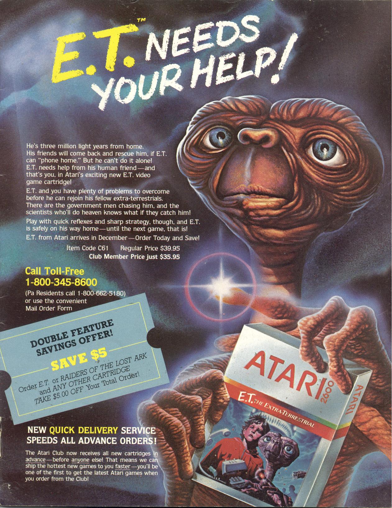 Con la salida de la película ET, el Extraterrestre, Atari vio la oportunidad de convertir el éxito de taquilla en un éxito de videojuegos, por lo que lanzó en 1982 E.T. the Extra-Terrestrial, para su consola Atari 2600.