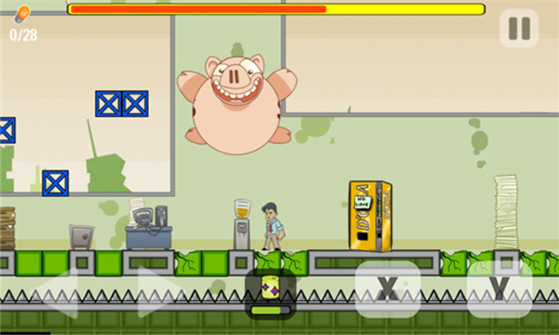 Office Madness en general es juego vistoso, más tomando en cuenta que se trata de un juego para móviles. El carisma entra por los ojos al ver a los creativo enemigos como fotocopiadoras autómatas, ovejas, personal de limpieza, robots hechos de utilería y algún cerdito volador. La paleta de colores es acorde, sin embargo si hubiera algo para criticar es que dentro del diseño de escenarios vemos demasiados bloques de mismo color, en este sentido hubiese sido mejor un acabado artístico más detallado en lo que hay dentro de un edificio de oficinas.