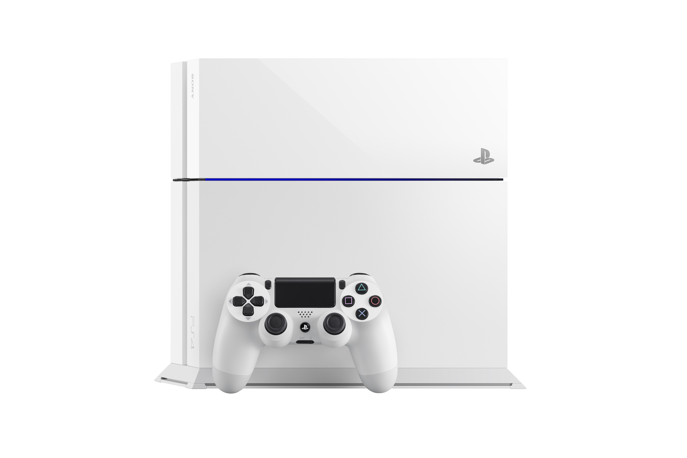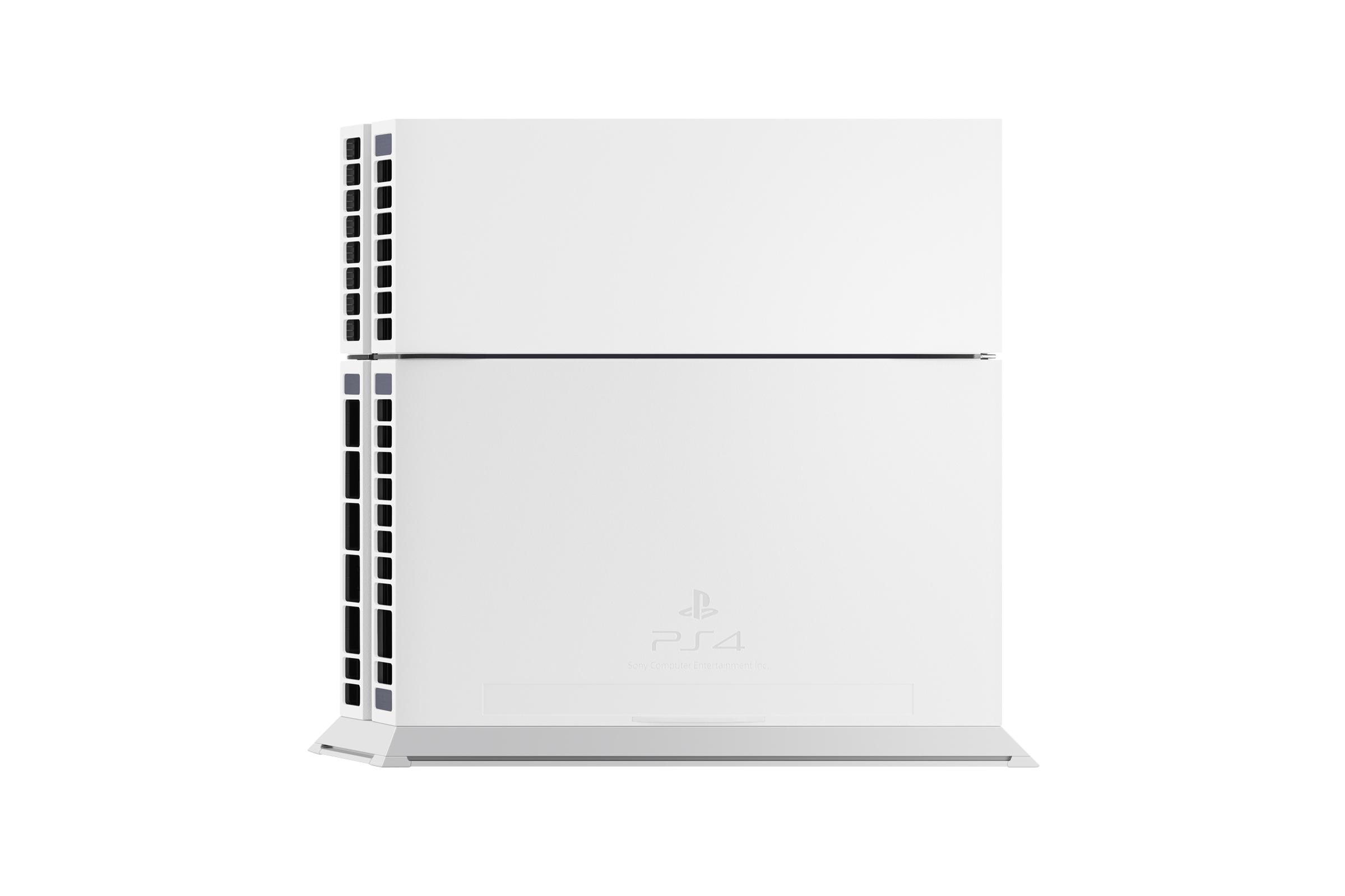 Para quienes no son fanáticos del color negro, Sony anunció en la E3 2014 una nueva PlayStation 4 en un color nombrado “blanco glaciar”, el cual, supongo, es diferente a un blanco de taza de baño. Al igual que el sistema, también estará disponible el aditamento para que la consola se detenga en estado vertical. Que ya lo hace, pero éste hará que esté más seguro. También habrá un control DualShock 4 en color “camuflaje urbano”.