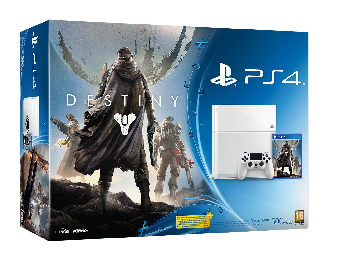 Esta edición de PS4 saldrá a la venta un paquete bastante atractivo, con la consola en su nuevo color, el Dualshock 4, una membresía de PlayStation Plus válida por 30 días y el próximo videojuego de Activision y Bungie, Destiny. Su precio rondará los 449 dólares. Obviamente quien no quiera el juego, se venderá por separado, al igual que el control blanco glaciar, el control camuflaje urbano y el aditamento para detener la PlayStation 4.