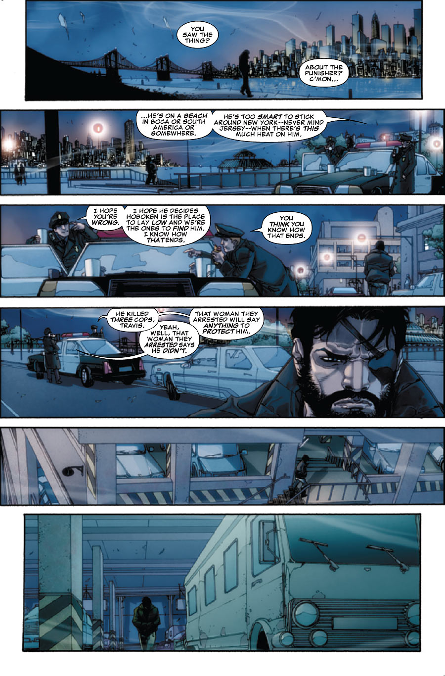 En lo que este conflicto se resuelve, a lo largo de cinco insufribles meses, Greg Rucka cierra señalando que “esencialmente la serie, como un todo, es una representación de problemas irresolvibles entre dos partes”. ¿Cuál será el futuro de Punisher? ¡No hay que despegar los ojos de la página si quieres averiguarlo!