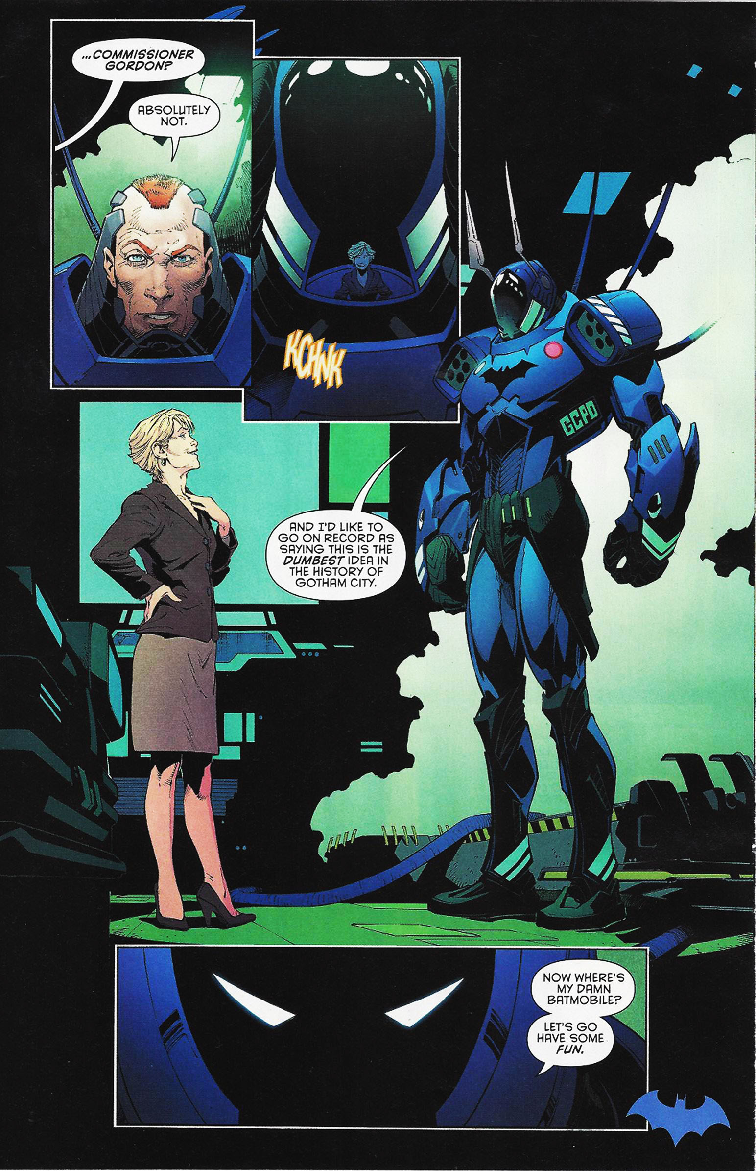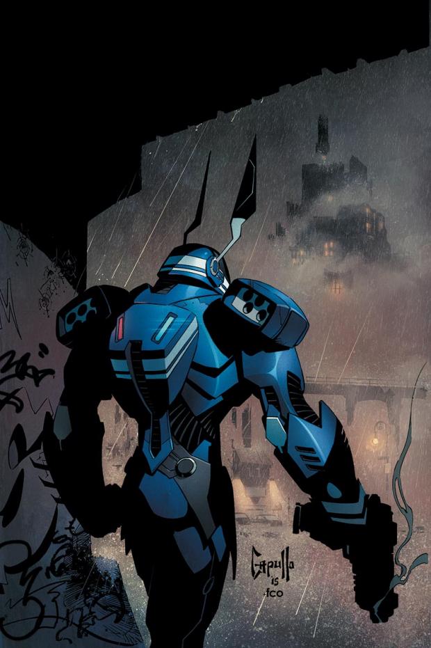 Y uno de esos cambios es quién tomará su lugar. El evento del Día del Cómic Gratuito (Free Comic Book Day) en Estados Unidos nos ofrecerá una probadita del futuro, con la primera aparición de un nuevo mecha Batman, una armadura mecánica diseñada por el Departamento de Policía de Gotham, la cual pilotará/usará un James Gordon con un curioso corte de cabello.