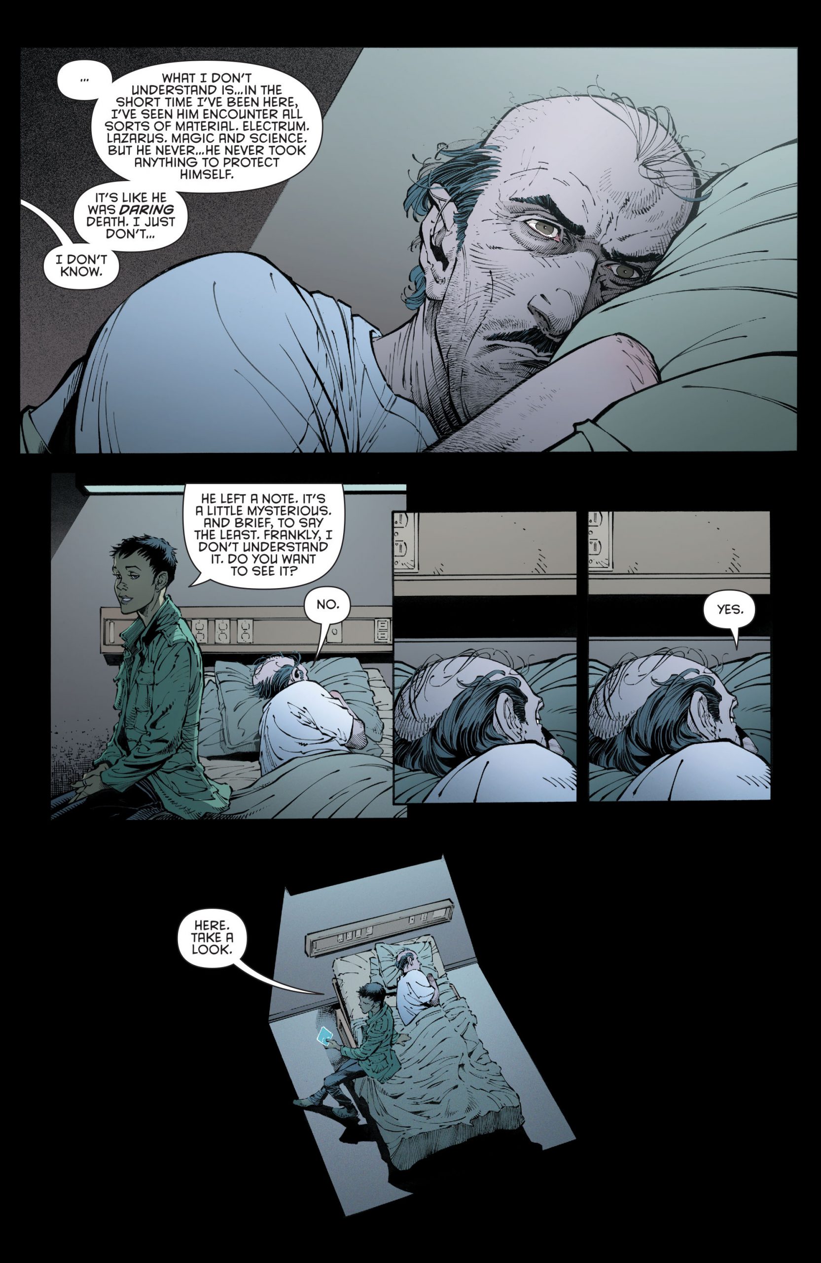 Aunque sitios como CNN manejaron la historia como la muerte de Bruce Wayne, la realidad es que estos últimos paneles nos presentan un par de figuras sombreadas, una de ellas evidentemente de Bruce Wayne (las heridas lo delatan), quien cuelga (de nuevo) el Manto del Murciélago.
