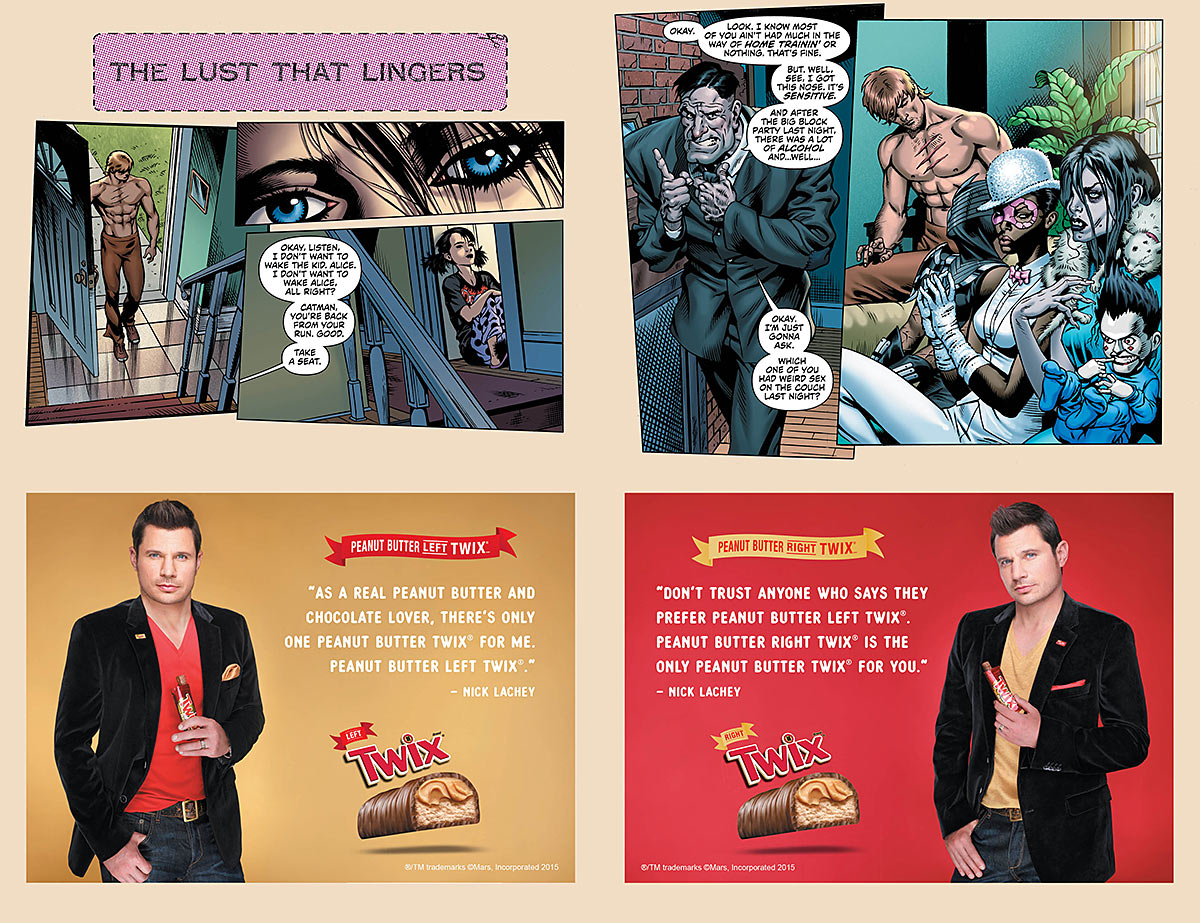 El colmo llegó hace un par de meses cuando a DC se le ocurrió que la forma de seguir siendo redituable era incluir anuncios de media página en algunos de sus comics. De esa forma, mientras lees un intrigante comic de Batman, la página central la encuentras mutilada con la foto de un sujeto intentándote vender un chocolate Twix.