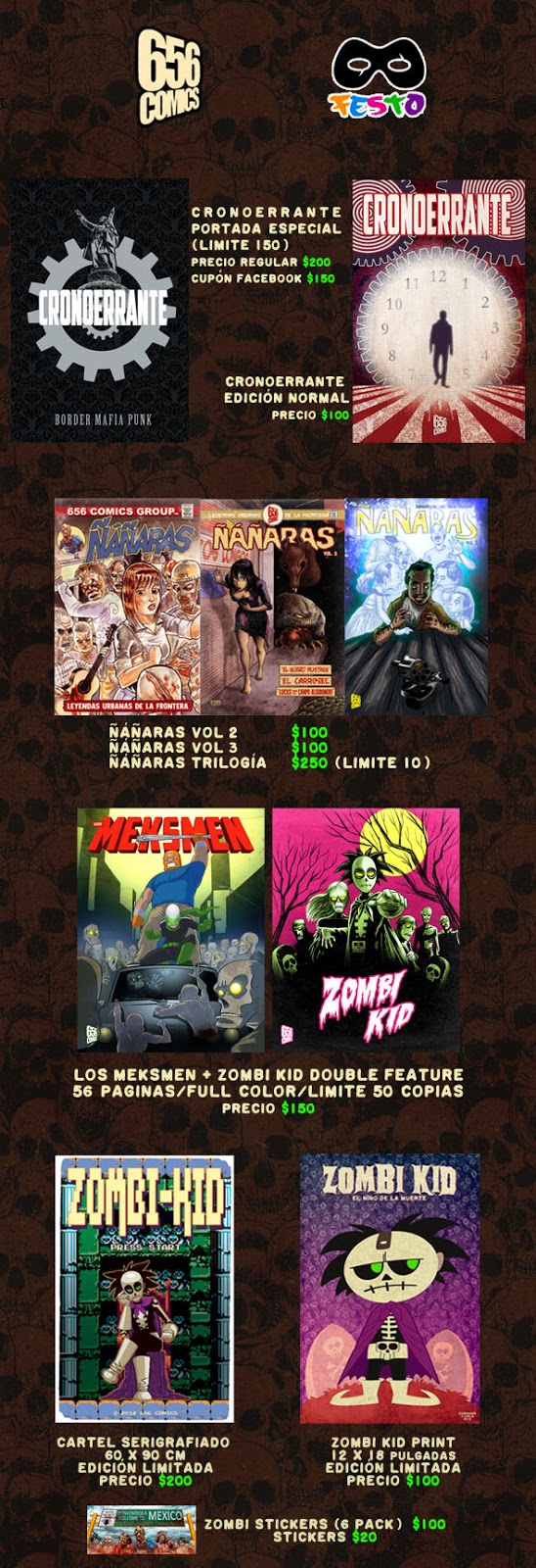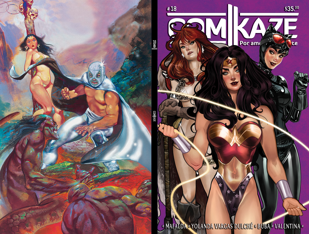 Preventa FESTO: Al apartar en libro con la mitad del total, se obsequiará un pinup tamaño tabloide, con arte de Bazaldúa (tres modelos a elegir). El libro y el pinup se entregarán durante FESTO. Informes a enviocomikaze@gmail.com.