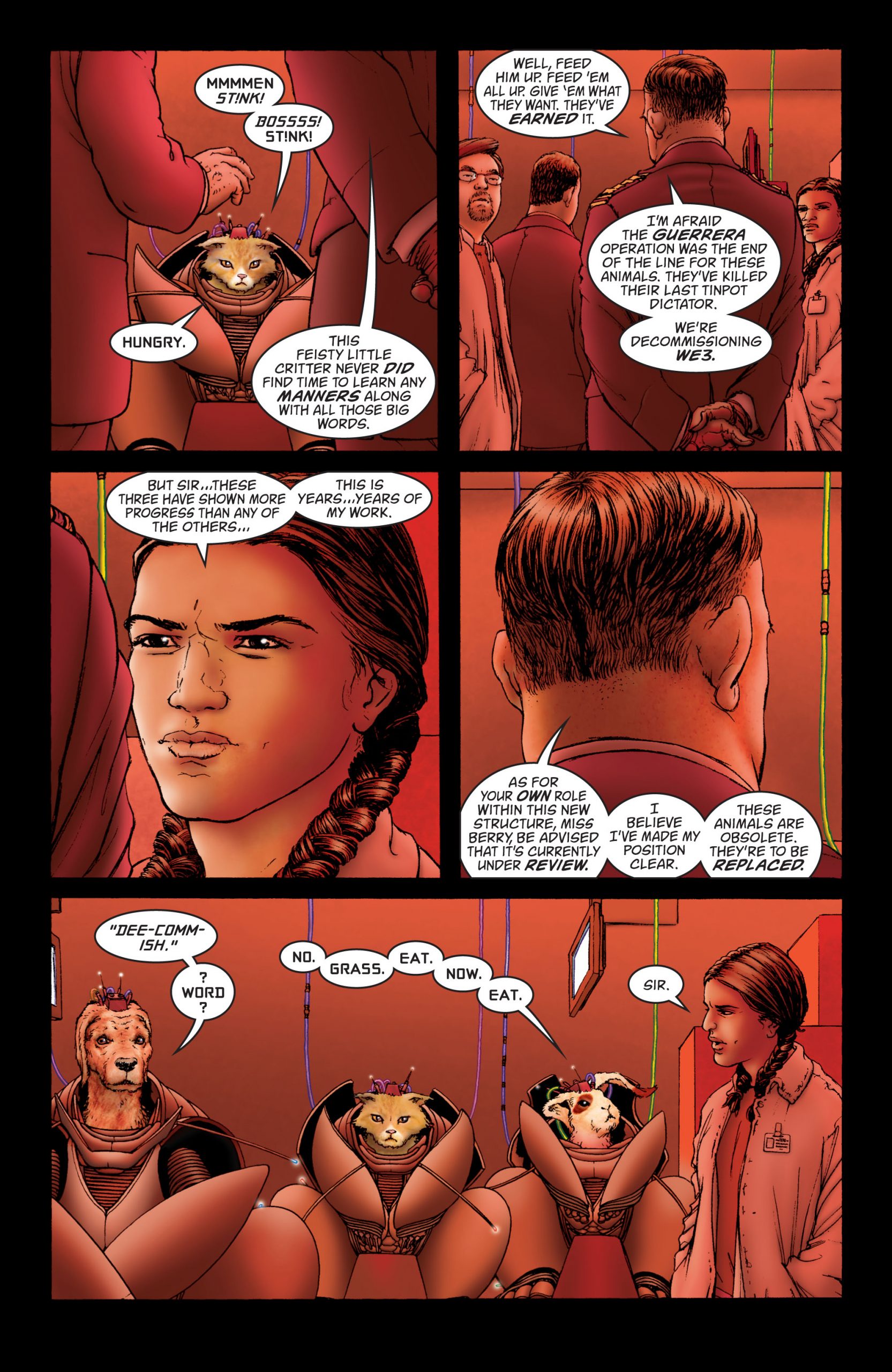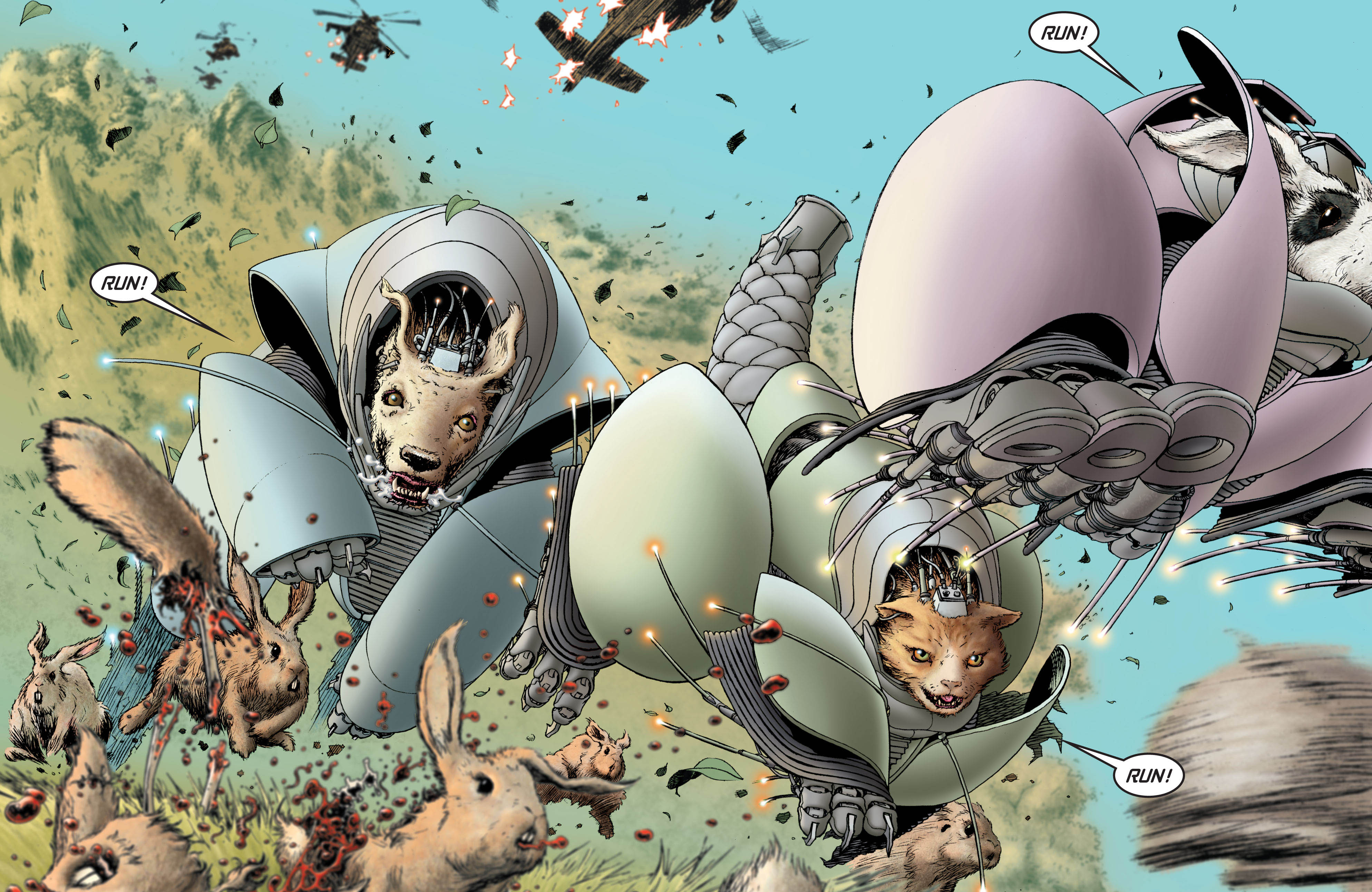 La historia en el cómic para esta altura gira en torno al uso que algunos científicos les dan a los animales como armas vivientes para salvaguardar la integridad física de los humanos, es decir, una constante muestra de la crueldad de los humanos para con ellos (en el mundo real también experimentan con ellos hasta para probrar shampús), y como estos obtienen su revancha de una forma por demás gráfica.