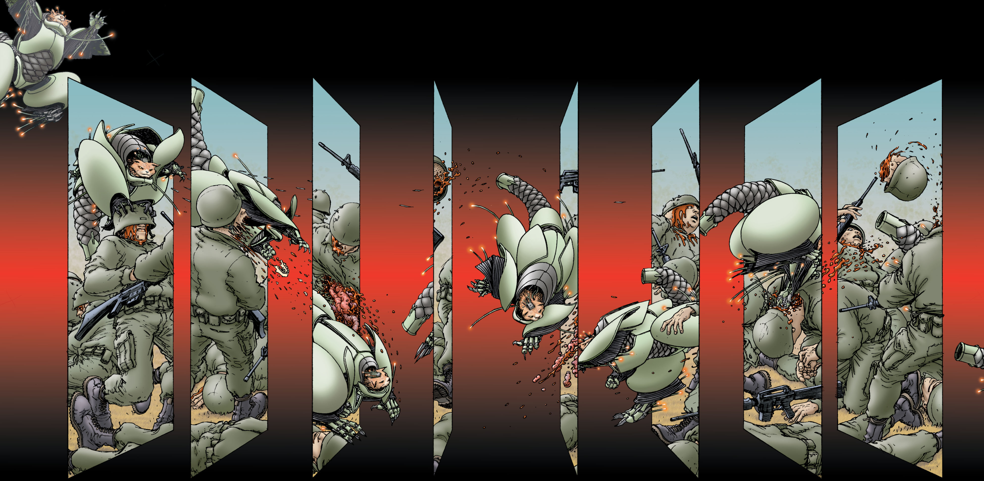 El arte de Frank Quitley es impresionante en los paneles dobles.