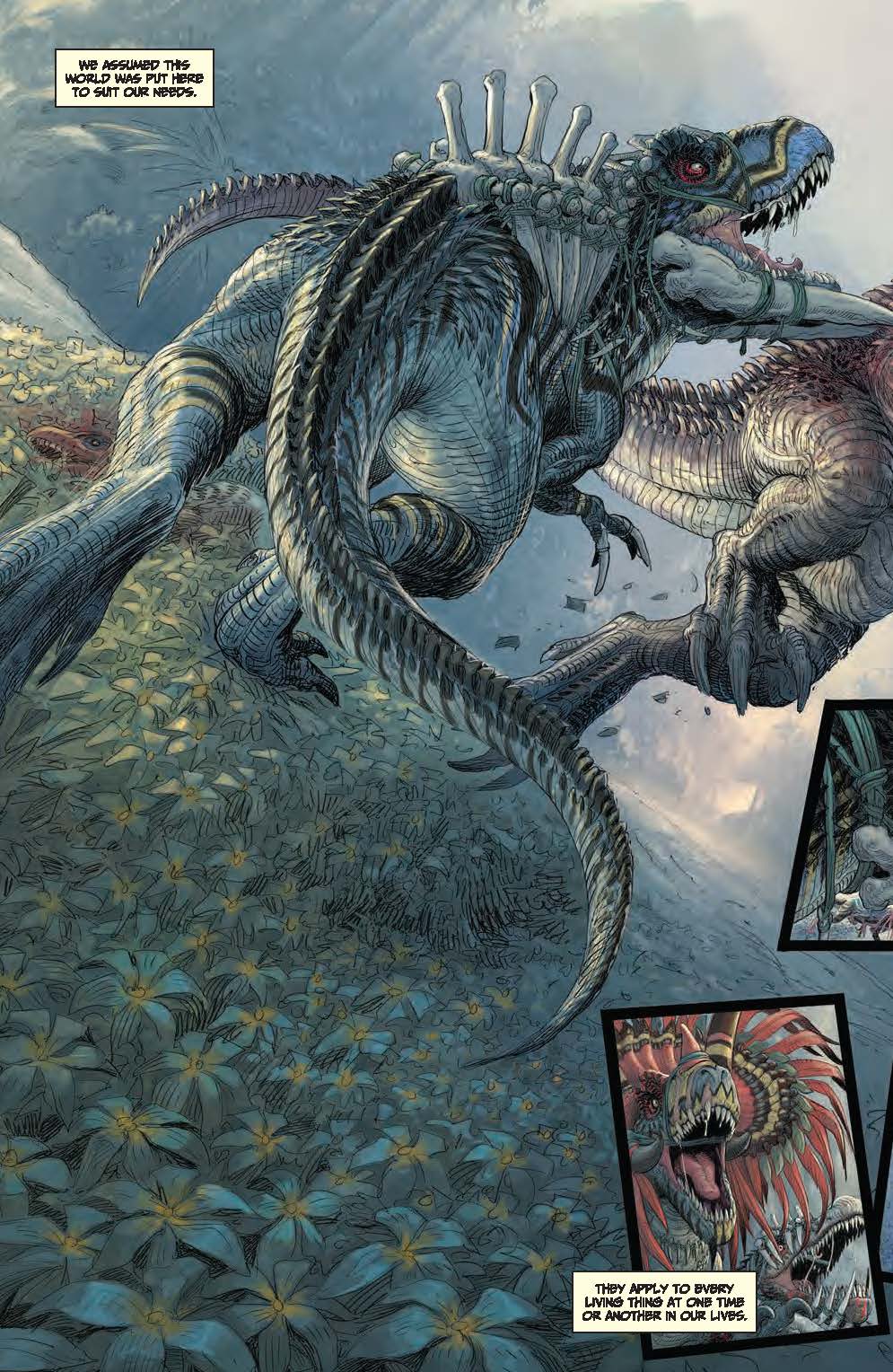 Hace ya unos meses Barry Sonnenfeld y Grant Morrison anunciaban sus intenciones de crear una novela gráfica y una posible película bajo el título de Dominion: Dinosaurs vs Aliens. Pues bien ya están los previews del cómic, donde se muestra que al parecer los dinosaurios tenían una civilización propia y se convirtieron en el bastión de defensa de la Tierra ante una invasión extraterreste.