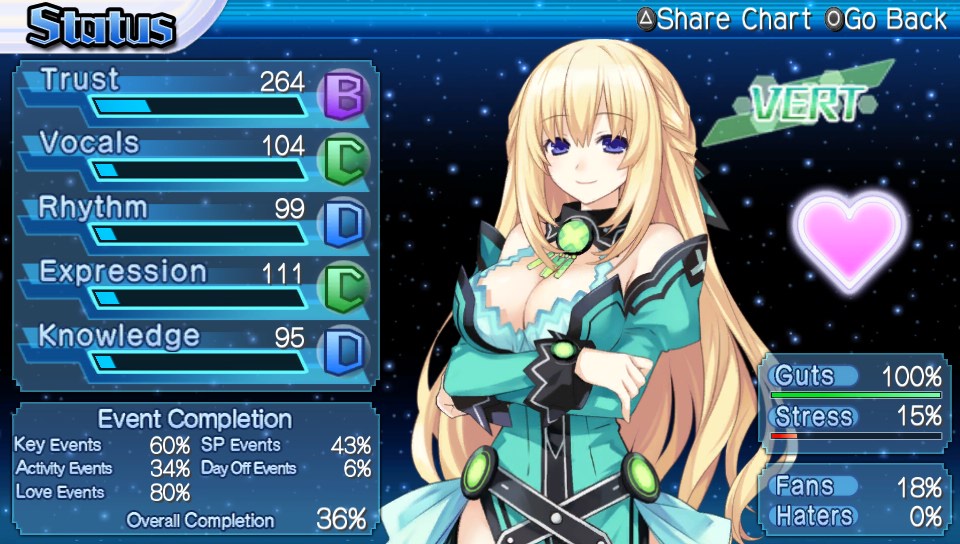 Sacar el trofeo de platino de Hyperdimension Neptunia: Producing Perfection no es tan complicado, pero te exige desbloquear todo, lo que si bien no implica dificultad más allá de entender la mecánica de cómo se tiene acceso a ciertos eventos, si te tomará al menos dos vueltas por chica y un par de decenas de horas de juego.