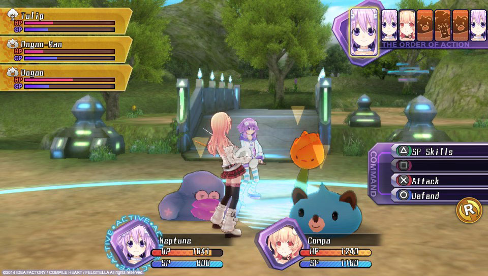 El videojuego se trata de un RPG táctico donde las chicas y enemigos son representados en formato chibi; habrá que tener en cuenta no sólo nuestras habilidades sino el terreno, la elevación y la posición en el mapa. Los clips muestran las habilidades de Moru y Neptune.