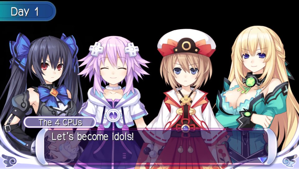 ¿De qué puede tratar un título donde la idea es administrar idols? Bueno, las monarcas de los cuatro reinos del mundo de Gamindustri perdieron popularidad con la llegada de grupos pop, por lo que han pensado que la mejor solución es que ellas también le entren al mundo de la cantada, y como son neófitas en el asunto requerirán que les eche la mano un humano conocedor del tema: tú.
