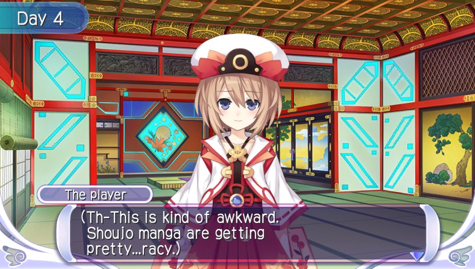 Si no conocen las novelas visuales, son experiencias enfocadas principalmente en lo que su mismo nombre implica: leer y ver, las acciones con las que interactuamos son en verdad reducidas y se limitan a seleccionar opciones que modifican de alguna forma el rumbo de la aventura/historia. En este caso, por ejemplo, las cuatro chicas en cuestión (Neptune, Noire, Blanc y Vert) nos hacen de vez en cuando alguna pregunta, y el resto de veces que picaremos un botón será para elegir cómo “entrenarlas” o qué actividad sigue en su agenda.