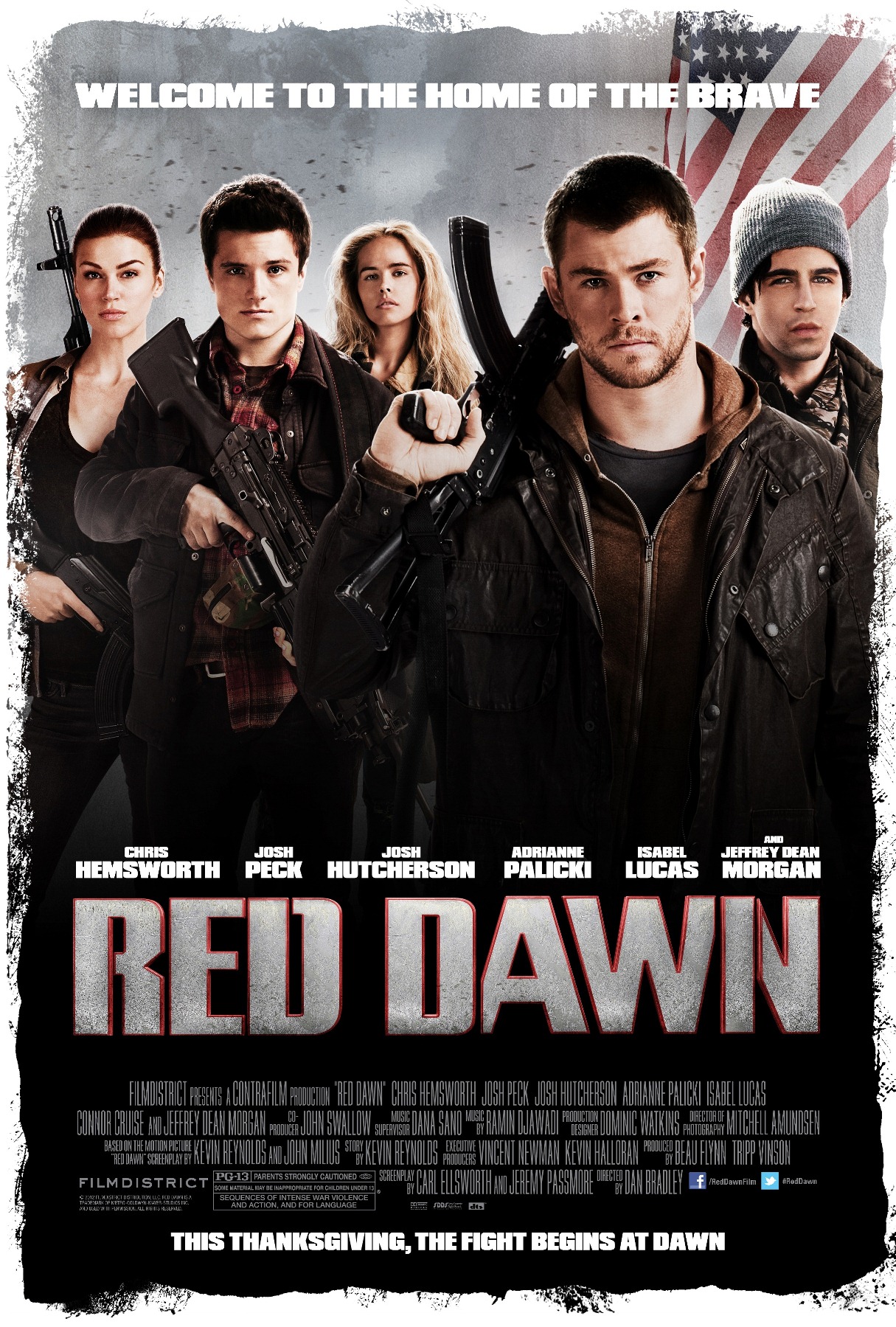 Red Dawn estaba planeada para estrenarse en 2010, sin embargo por varios conflictos políticos la cinta tuvo que ser retrasada, pero al fin la cinta podrá ver la luz en la pantalla grande. A continuación te mostramos el tráiler y póster oficial de la película, que será estrenada el 21 de noviembre de este año.