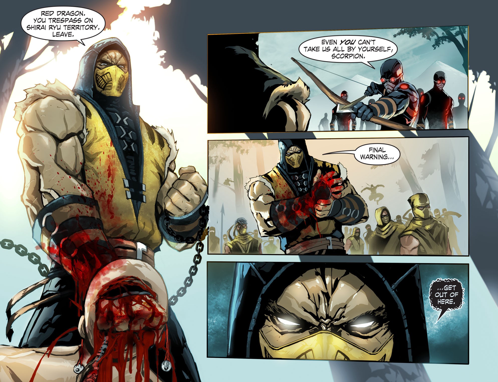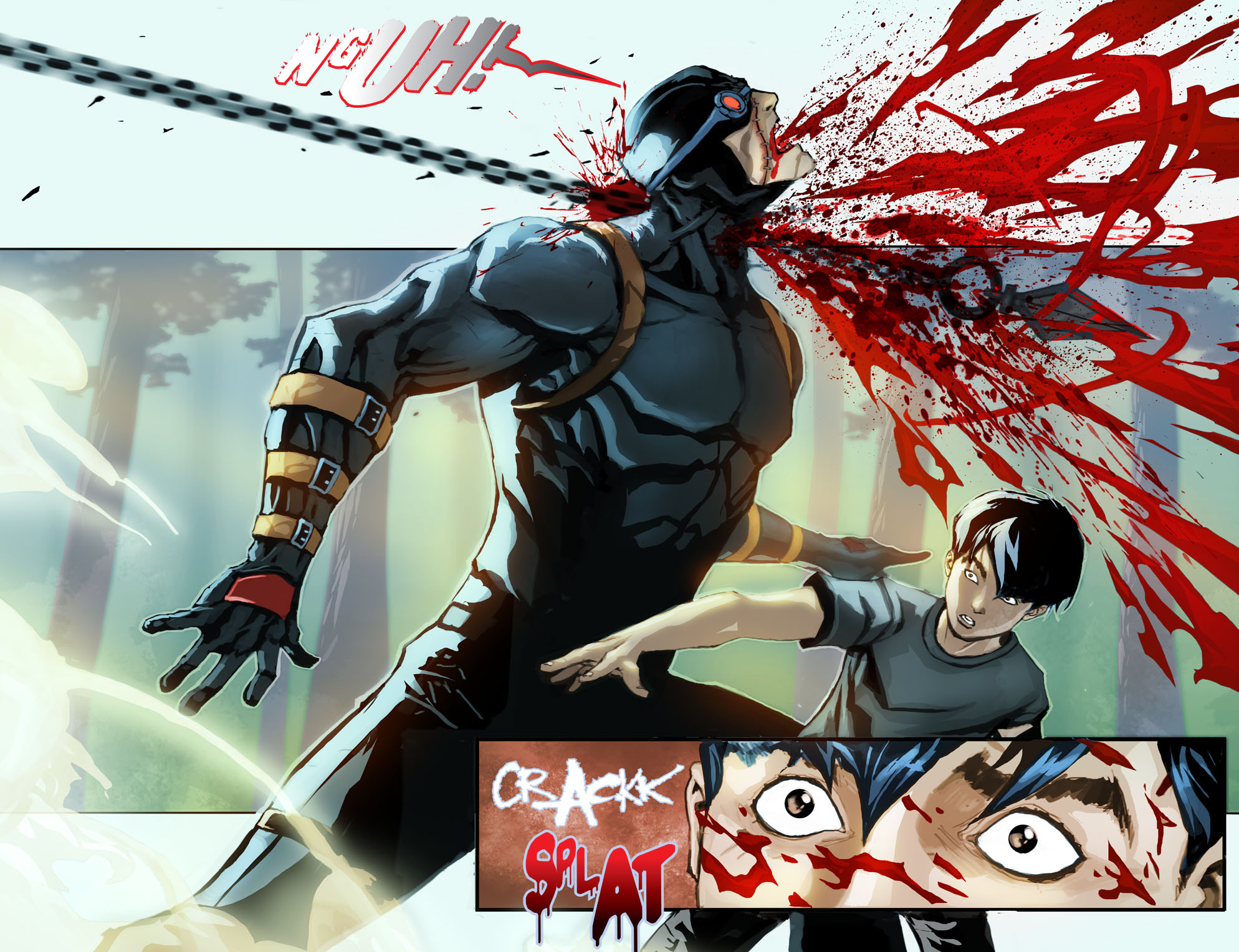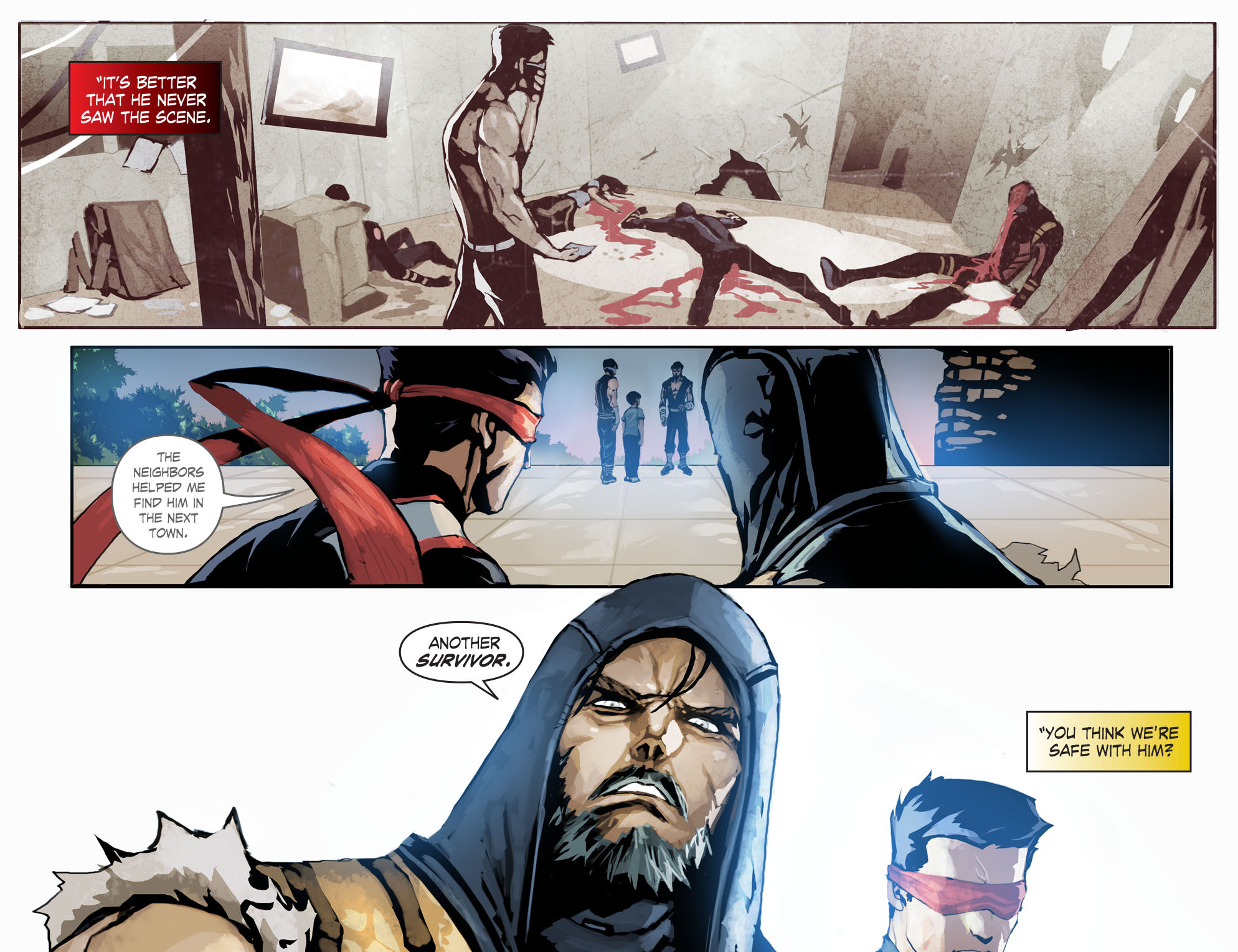 En el panel final de esta página se observa del lado izquierdo el traje, con todo y casco rojo que usan durante la supuesta conversión de Joker en la novela gráfica The Killing Joke, de Alan Moore. Al centro, las pantallas con el rostro de su más reciente aparición, en la corrida de cómics por parte de Scott Snyder y Greg Capullo. Del lado derecho una carta gigante que representa los primeros encuentros de Batman con Joker en los años 40, cuando el personaje fue creado por el ya fallecido Jerry Robinson.