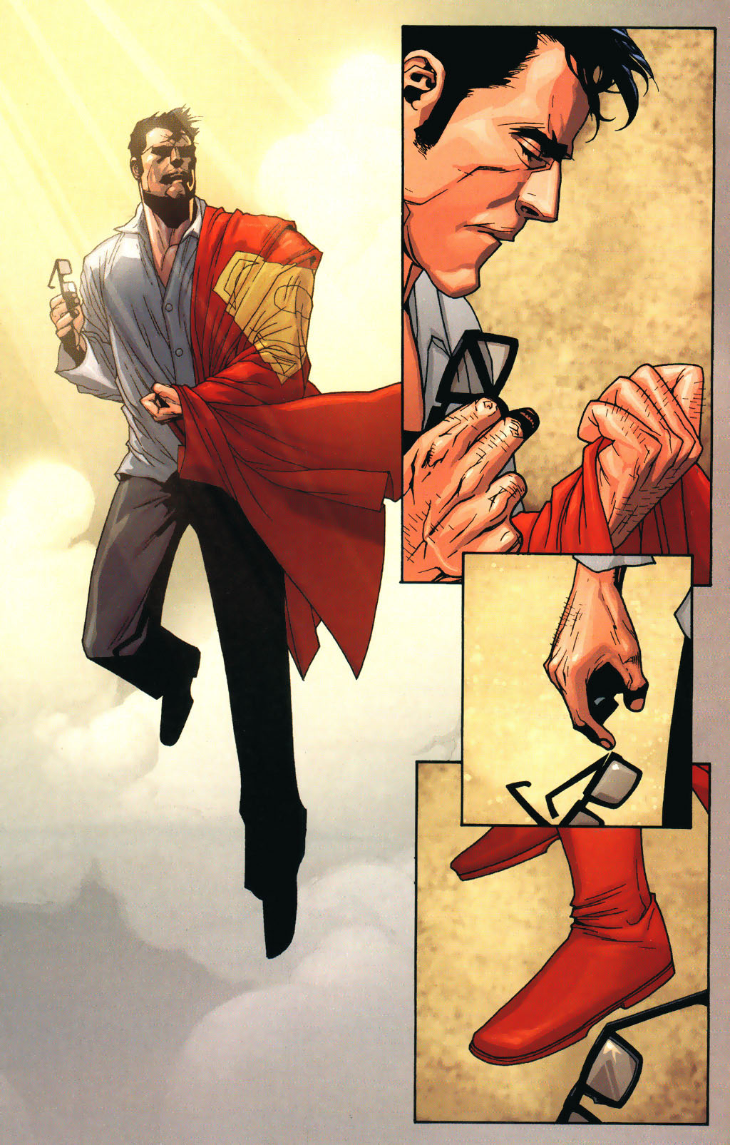 Desde luego, la relación con sus padres no se encuentra ausente en esta historia de origen, pero aquí se da principalmente por correo electrónico (¿qué esperaban?). Uno de los puntos focales de la historia es también Jonathan Kent y su conflicto al saber que Clark desea crearse una nueva identidad y olvidar lo que él le enseñó. Una bastante clara dicotomía entre el Superman como héroe universal y el tan reiterado Superman “protector del modo de vida americano”, que Mark Waid contrapone, en vez de censurar, para sintetizar a un Superman definitivo.