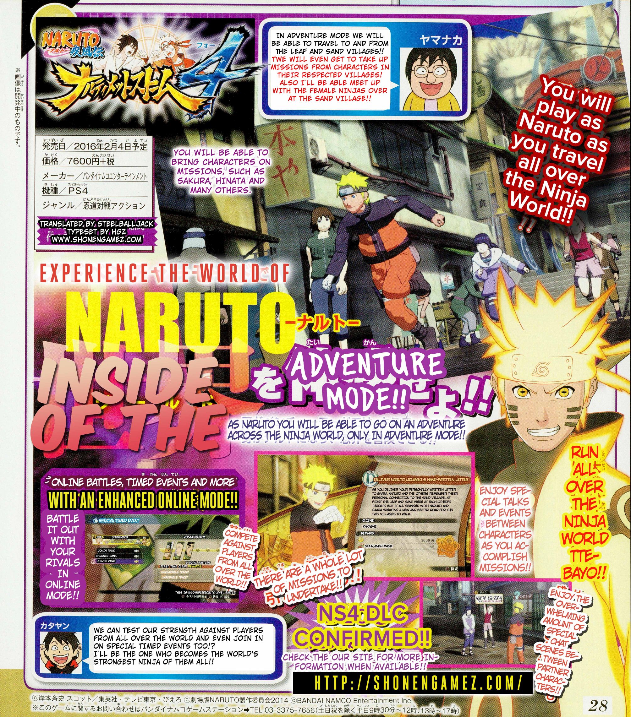 Los jugadores también pueden ver qué sucede después de los eventos del anime en el Modo Aventura y podrán correr a través de una fiel recreación de la Aldea de la Hoja y la Arena mientras realizan misiones adicionales y recuerdan sus inicios y desbloqueas aún más misiones y conversaciones secretas.