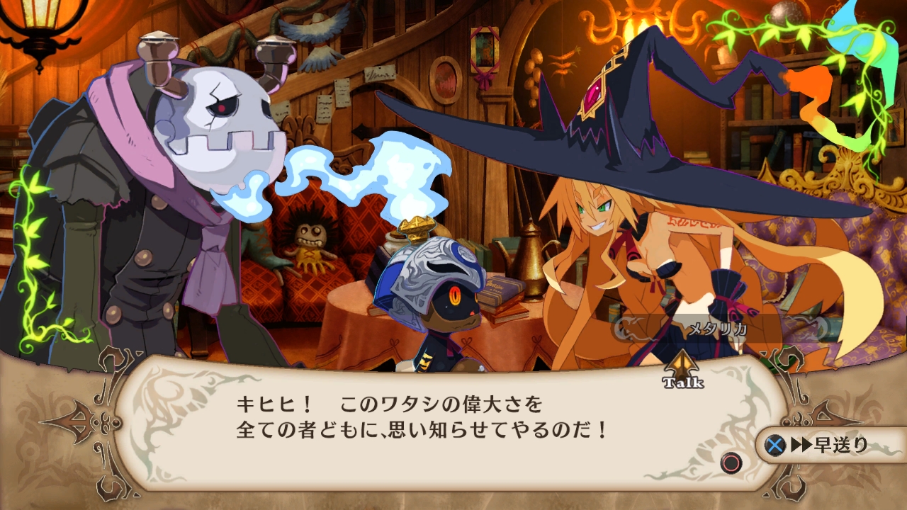 La trama es simple, predecible y hasta podríamos decir aburrida, pero las relaciones entre los personajes son realmente cómicas; si durante un combate Laharl y Etna se encuentran lado a lado se puede iniciar una conversación en la cual harán referencia al equipo que están usando, la trama o hasta la propia lucha en la que participan, todo esto de una forma muy divertida, por lo que ninguna batalla llega a aburrir o sentirse repetitiva.
