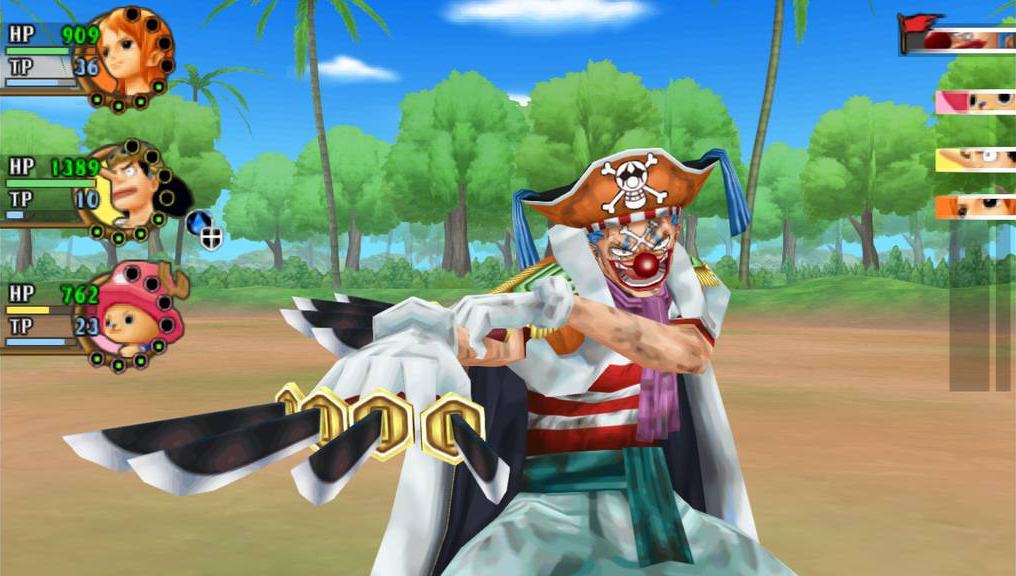 Antes de salir a navegar los mares es importantísimo que les platique cómo se reparte el queso en One Piece: Unlimited World Red, ya que gran parte del tiempo nos la pasaremos envueltos en refriegas. Cuando tengamos que dar bofetadas sencillas a los secuaces no veremos ningún medidor de vida en ellos, es cosa de pegarles hasta que desaparezcan, siendo una de las cuestiones más nefastas la de esperar a que se paren y se pongan otra vez en guardia, ya que estando en el suelo será imposible pegarles. Uno de los pocos puntos malos cuando se trata de repartir leña. Ya cuando nos pongan a los jefes de nivel -o enemigos fuertes-, aquí ya tendrán su enorme barra de vitalidad.