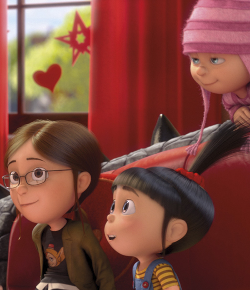 Aunque con un rol marcada y obviamente menor, estas niñas siguen siendo las caras más tiernas en pantalla, después de los Minions. Margo está entrando en la edad de la punzada y cae enamorada de un chico, Agnes prepara su recital para el Día de las Madres y se pregunta si alguna vez tendrá una, y Edith… Bueno Edith sólo le hace fuchi a todo y está algo desperdiciada.