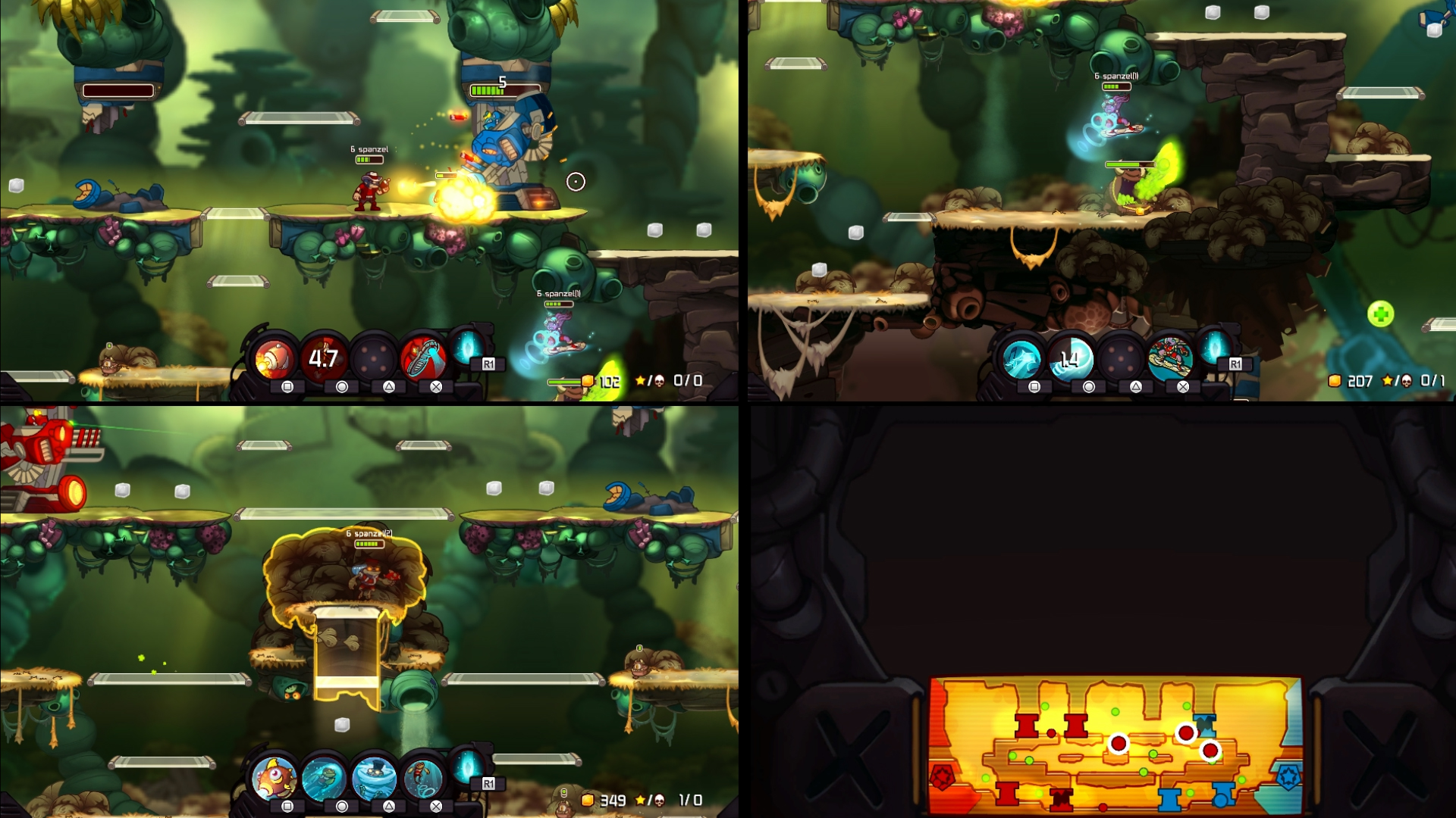 Tomaremos el rol de uno de quince personajes en batallas contra otras personas online, o bien por medio de la opción de pantalla dividida. Aquí tienes el tráiler y una galería con imágenes y arte de Awesomenauts Assemble.