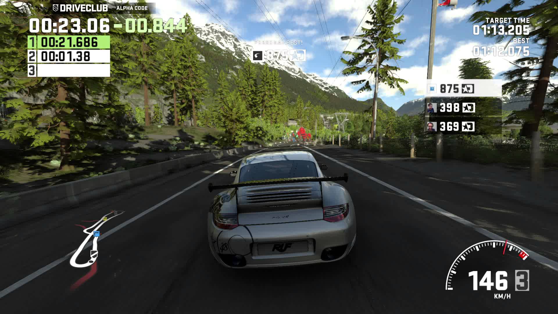 El gameplay de Driveclub no difiere mucho de otros juegos de carreras, aceleras con R2 y frenas con L2, la gran novedad es la interacción en línea. Cada que llegues a un punto estratégico (un derrape, una recta prolongada, una zona de curvas) se te puntuará por tu desempeño, pero eso no es todo, también te comparará con el de otros jugadores; en teoría no suena tan divertido como resulta en la práctica, superar a un amigo (o a un completo desconocido) significa ver su fotografía y la tuya intercambiar lugares en la tabla de clasificación, algo que sin duda se convertirá en la adicción de muchos.