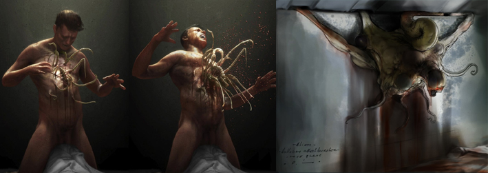 El chestburster que salió de Watts también es diferente al trilobite de Prometeo; se describecomo invertebrado, totalmente blanco y con una cara “como de demonio”. Aunque igual es más parecido al xenomorfo clásico que aquel pulpo que le salió a Holloway anteriormente.