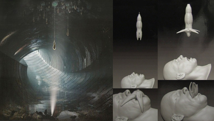 Watts sigue avanzando y encuentra una caverna. Observa a través de un holograma lo que pasó con Holloway. Del techo de la caverna cuelgan de hilos de baba una nueva especie de facehuggers, con apariencia de pulpo (a diferencia de los clásicos, que parecen escorpiones), uno de los cuales le cae encima a Holloway y Watts lo encuentra muerto en el piso. Obvio que este facehugger es más o menos como el que aparece cerca del final de Prometeo.