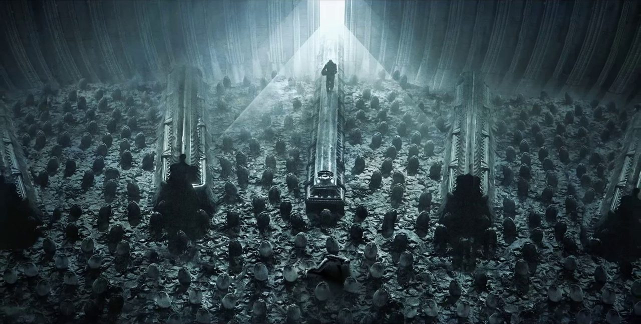 Al volver a la Pirámide, Janek encuentra los cuerpos de los dos militares que Watts “dejó plantados”, con huecos de chestburster (obvio que fue David el que los contagió). Tras adentrarse en el complejo, otro de los exploradores (Ray) logra matar a uno de los xenomorfos resultantes.